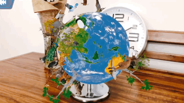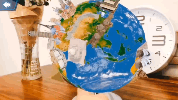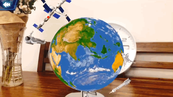 对准地球仪托盘上贴着的二维码,就可以实现AR操作啦!