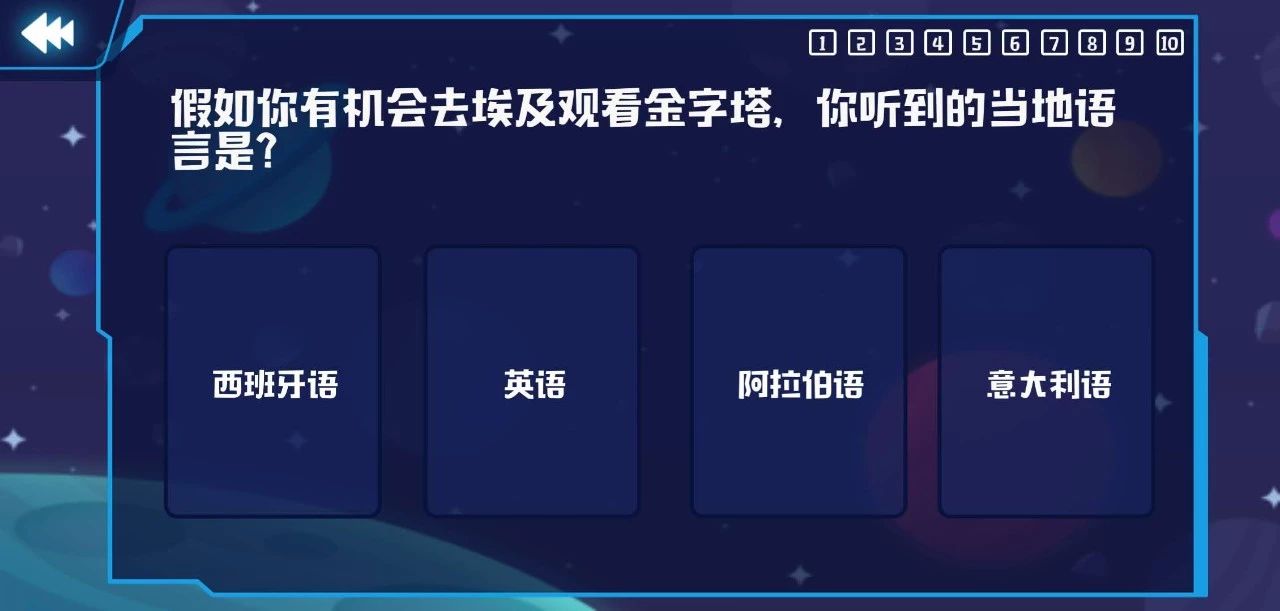 点击”地理答题“后,咱们会进入选择题册界面,分别有国旗问答和地理问答。