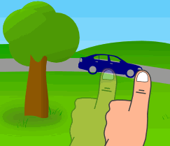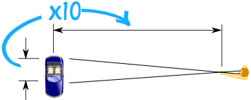 两次姆指间距乘以10,就是姆指和车的距离。比如这个图片里,两个姆指间距大概是3米,那么测量者姆指距离蓝色车大概是30米,@mathsisfun