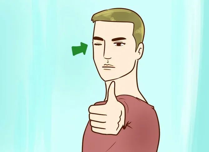就是这样的姿势了,注意睁开右眼,闭左眼 (绿色箭头)@wikihow