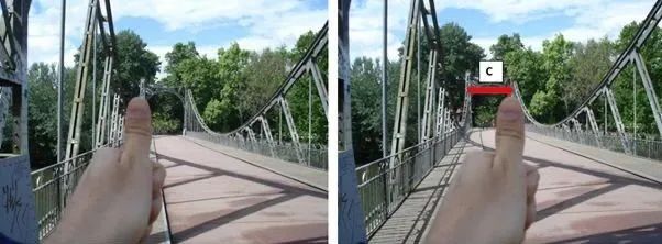2)比如你测量一棵树距离你有多远,树一般是3-5米高,你可以看看姆指移动的距离和树的高度有多大差距,比如姆指移动的距离看起来和树差不多高,那就算4米。