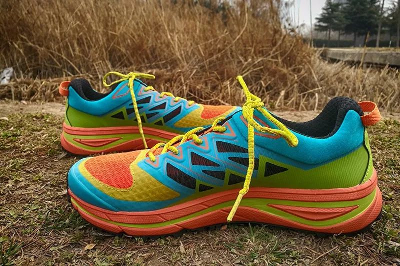 鞋子的包裹性根据前掌跑,鞋后跟没有拖泥带水的感觉,对于碎石、土路以及石阶的抓地力表现都很好,下坡制动也很踏实,鞋子的轻量灵活使得下坡路段跑的酣畅淋漓。