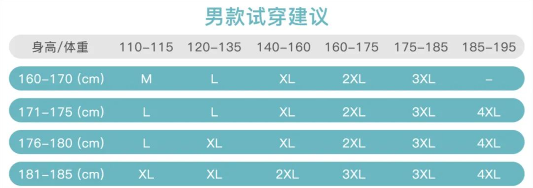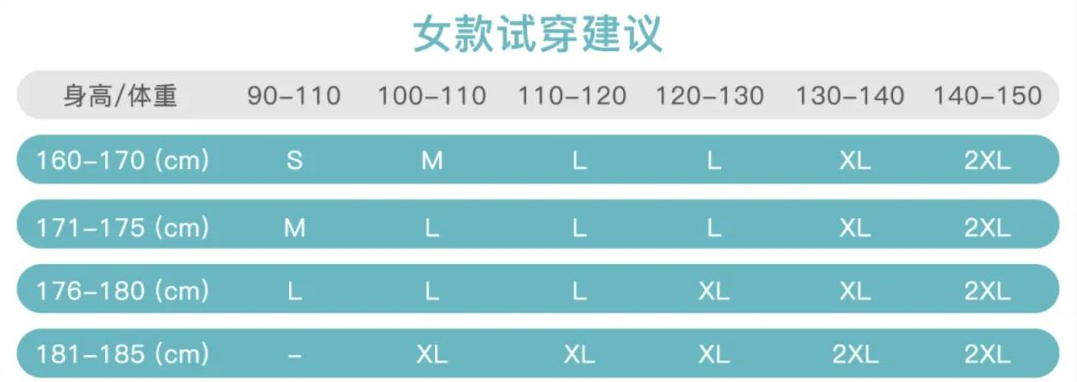 成人可以参照下表推荐选择对应尺码~
