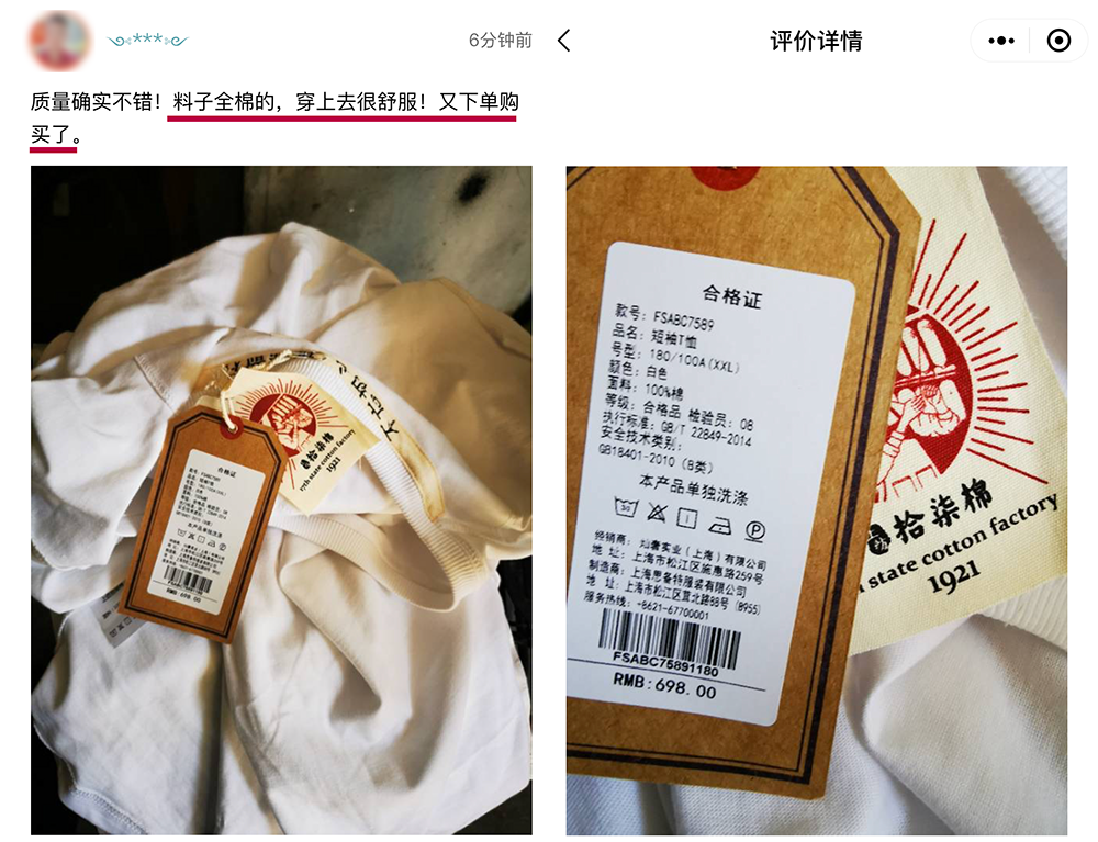 而拾柒棉 T 恤采用的就是这品种顶级的奢华原料,经历了国家棉花研究所育种、新疆核心棉花基地种植、国内一线纱厂织造、国棉十七棉厂工艺传承制造,最终做出了这件国人自己的小白T。