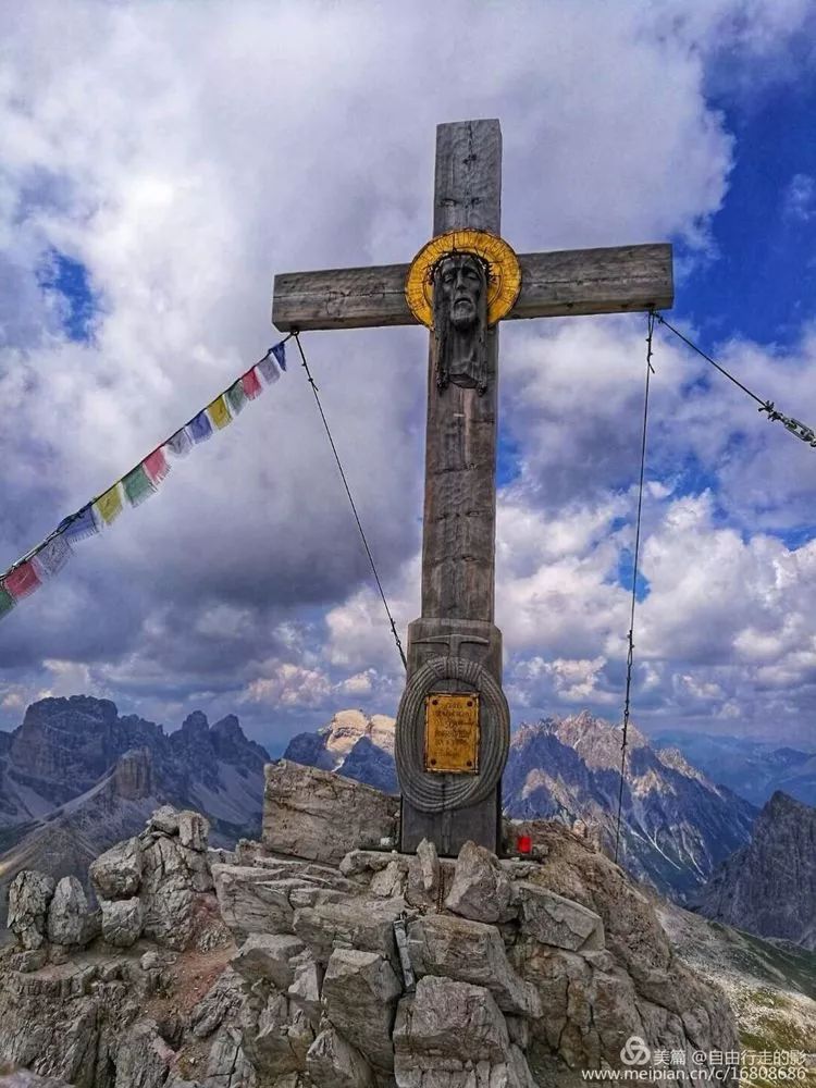 经历了山上落石,四肢并用,终于登上了海拔2700多米的山顶,巨大的十字架直刺苍穹。