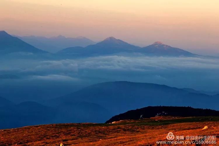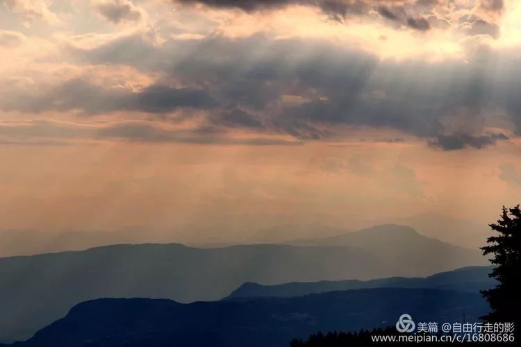 山峰逐渐变成金粉色,厚厚的云层也挡不住太阳落山前的拼尽全力的燃烧,仿佛要把它的光华悉数挥洒到人间,照亮我们的世界。