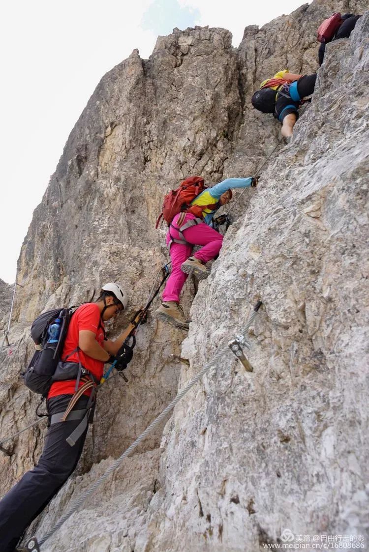 山上容易下山难,我紧跟着年轻的意大利教练走在最前面,紧张有序的下降,乌云转眼就笼罩头顶,山雨欲来,教练让大家加快速度,赶紧下撤,因为如果下雨铁索上是非常危险的。