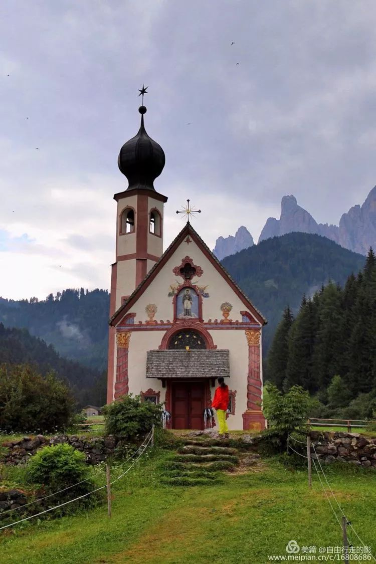 圣约翰教堂远离村庄,又小的可怜,称之为“孤独教堂”更贴切,其身后就是最上镜的盖斯勒群峰。因为总有摄影人踩踏田地,所以现在整个被围了起来,还在路边建了一个小小的观景台。