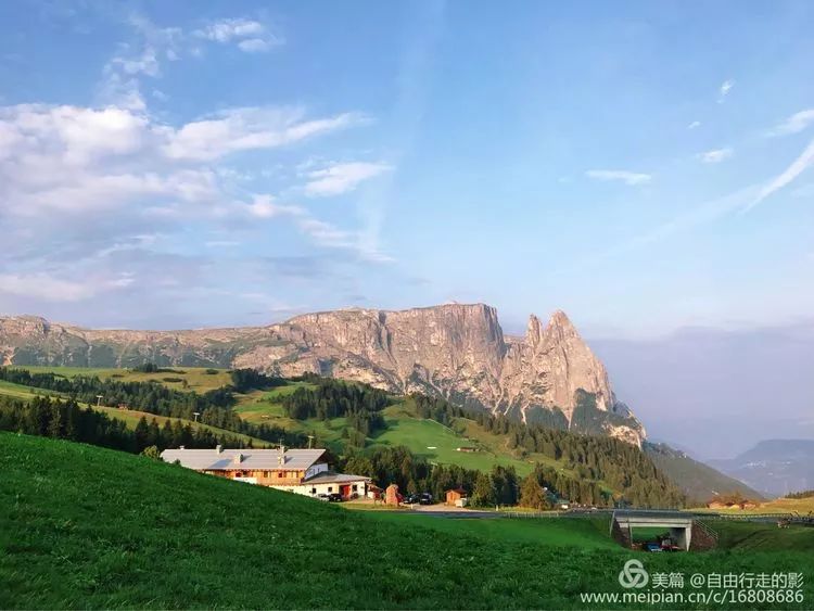 终于到达住宿地,酒店位置很棒,站在大厅就能看到休斯山Sciliar/Schlern希利亚尔峰/施勒恩峰。