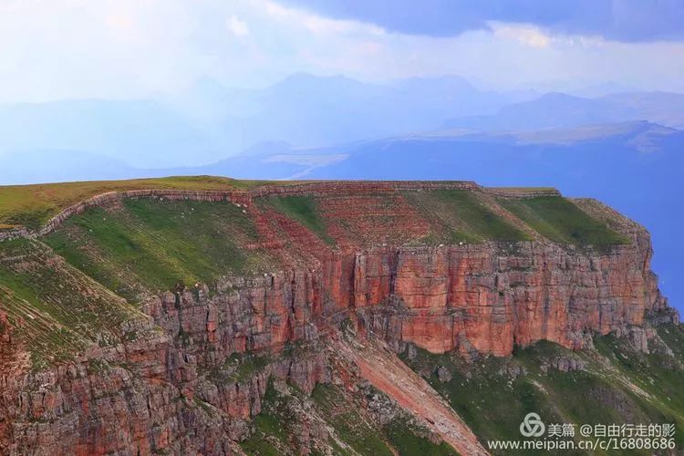 远方高耸的山峰矗立在绿草茵茵的草甸边缘,寸草不生的白云石山体和绿色草原混搭的风格是造物主的杰作。