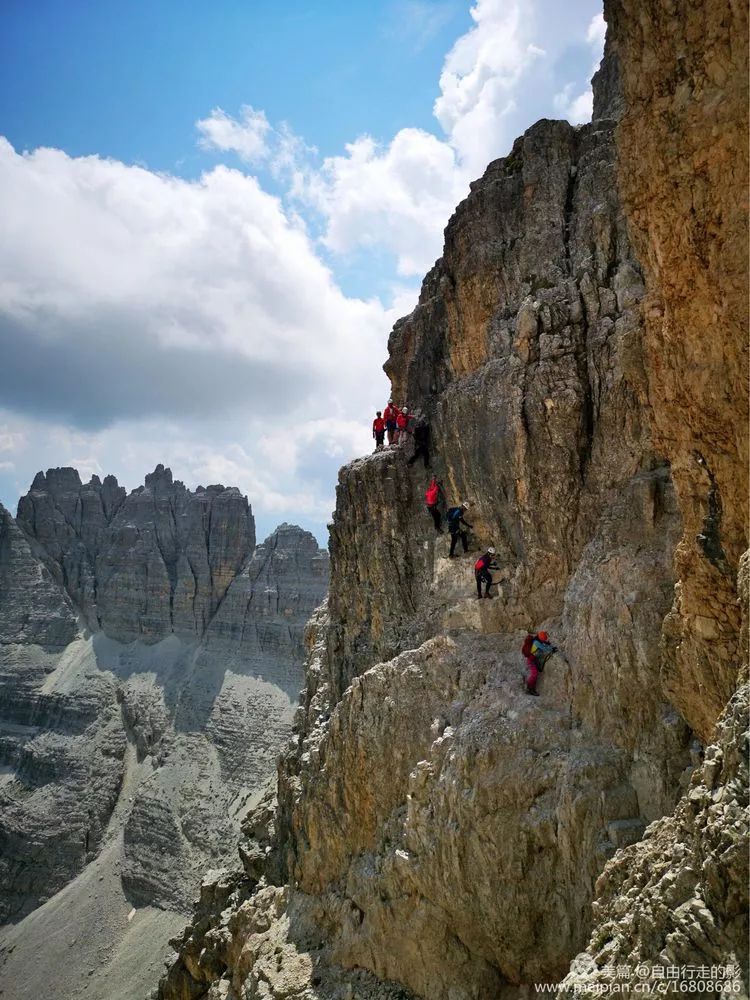 云中城堡路线可以徒步到多洛米蒂的玫瑰花园群峰,路线难度大,但可以看到拉特马群峰和其他多洛米蒂山峰。