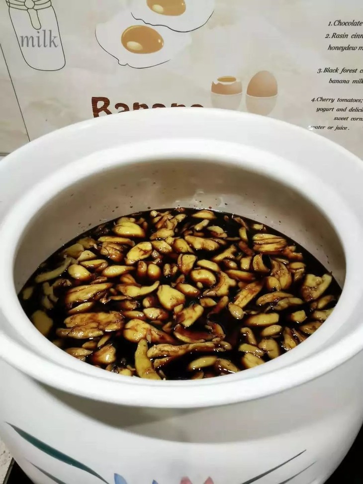 4.煮熟鸡蛋,剥壳。把剥壳的鸡蛋放入砂锅里,中小火继续煲50分钟。