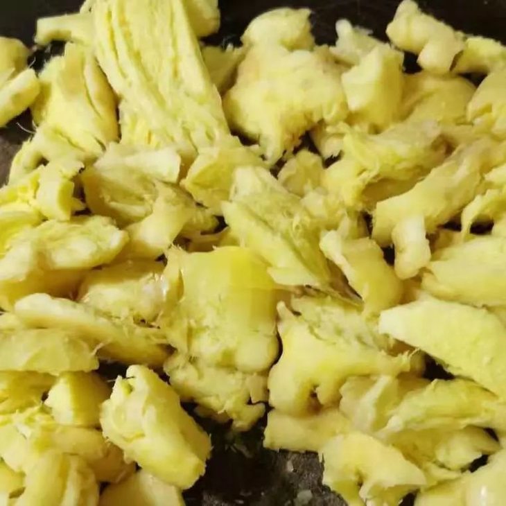 1.生姜洗去泥沙后把皮去掉、拍碎。