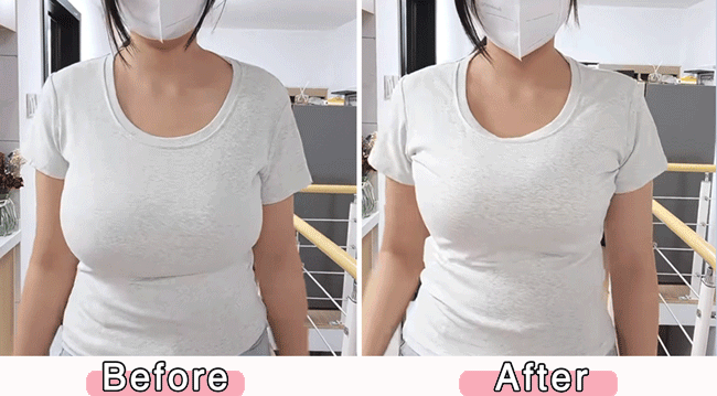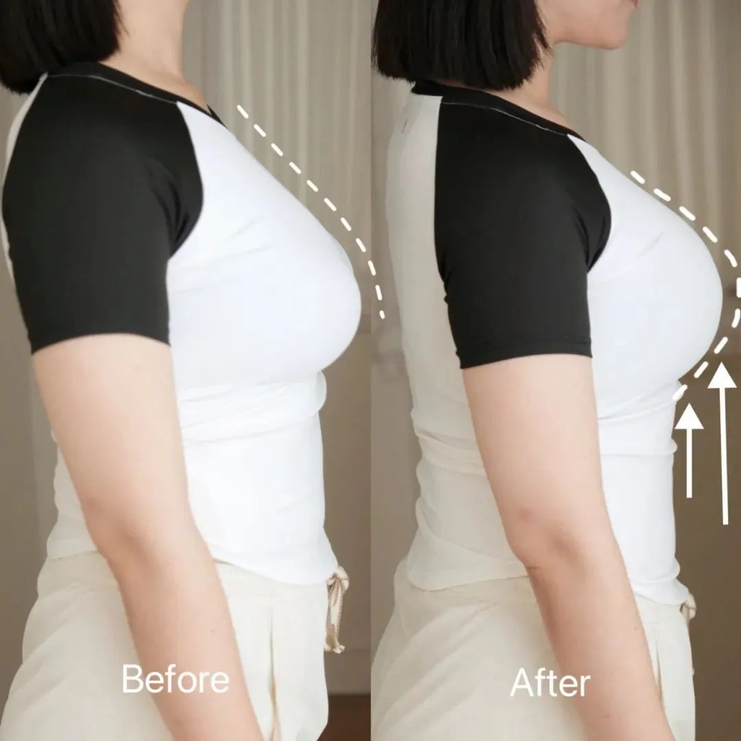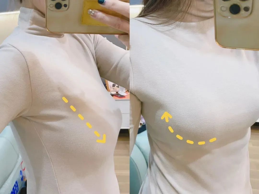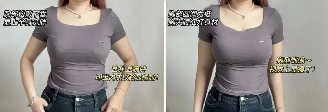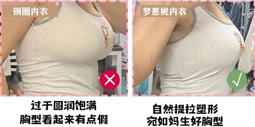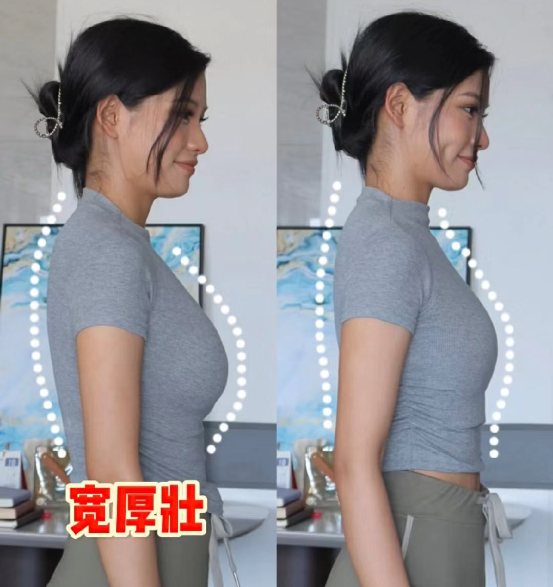 眼见为实,给大家对比一下,从侧面看很显瘦,视觉上直接缩小1-2个罩杯,还不失曲线美。