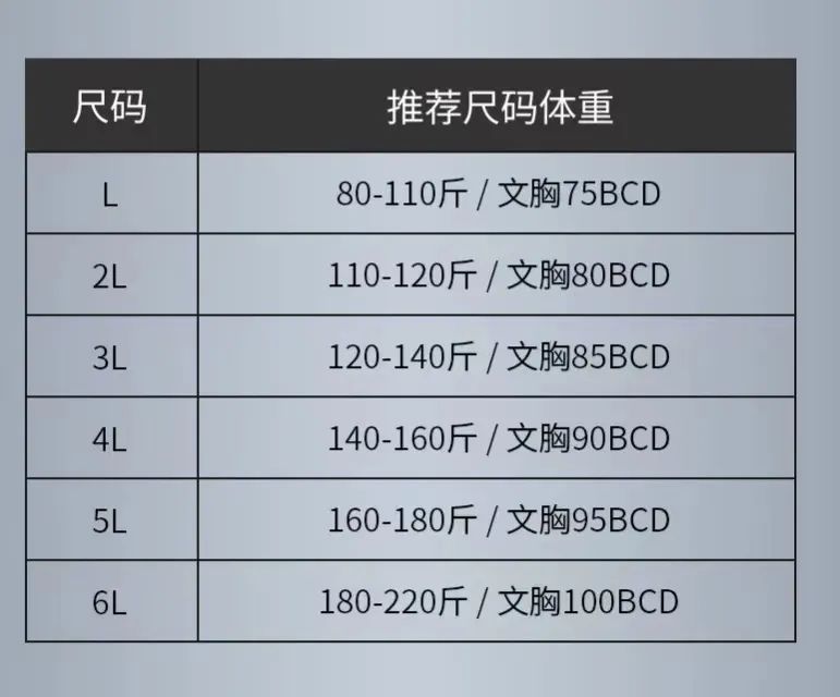 码数范围很广,L-6L,80斤——220斤都可以穿。