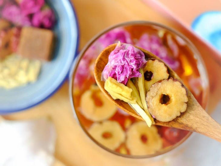 怀姜活血暖胃,搭配红糖,温补之效加倍。此外,在传统红糖姜茶的基础上,还加入了补血养胃的红枣、疏肝解郁的玫瑰花,强化补血之效的同时,能舒缓情绪,平抑怒火,一年四季都非常适合饮用。