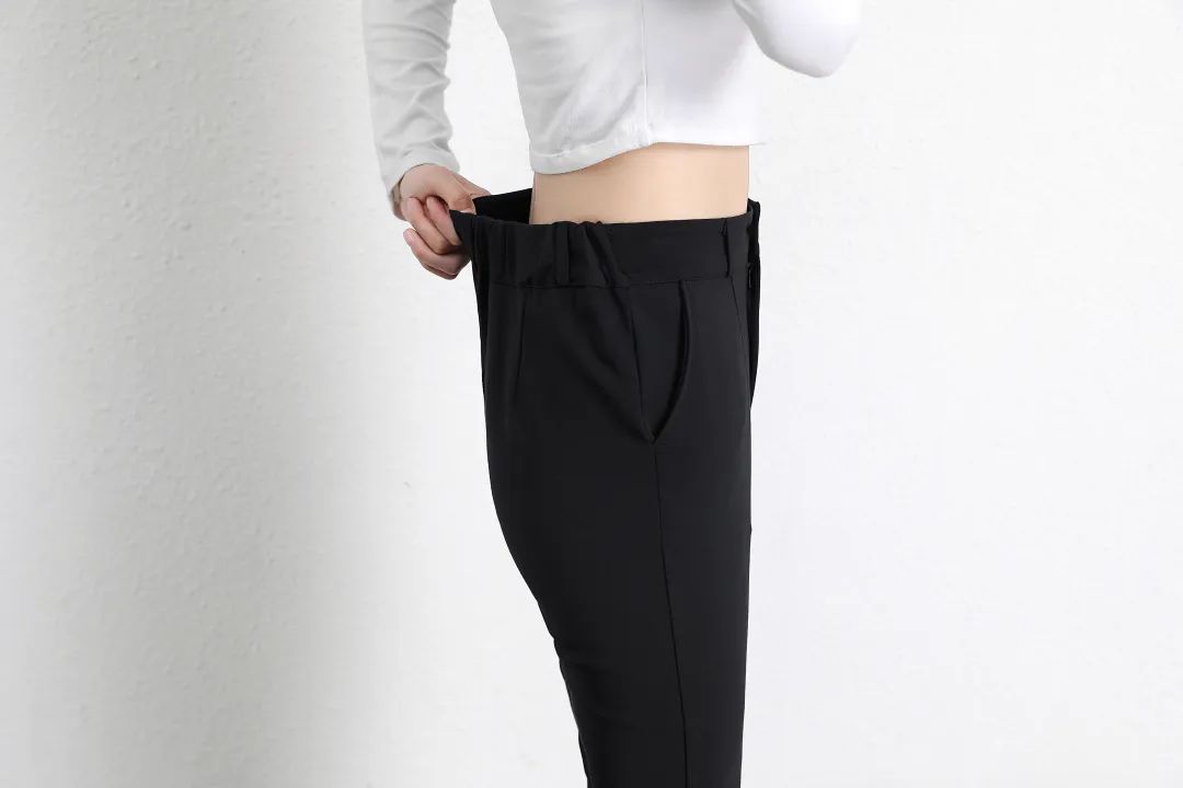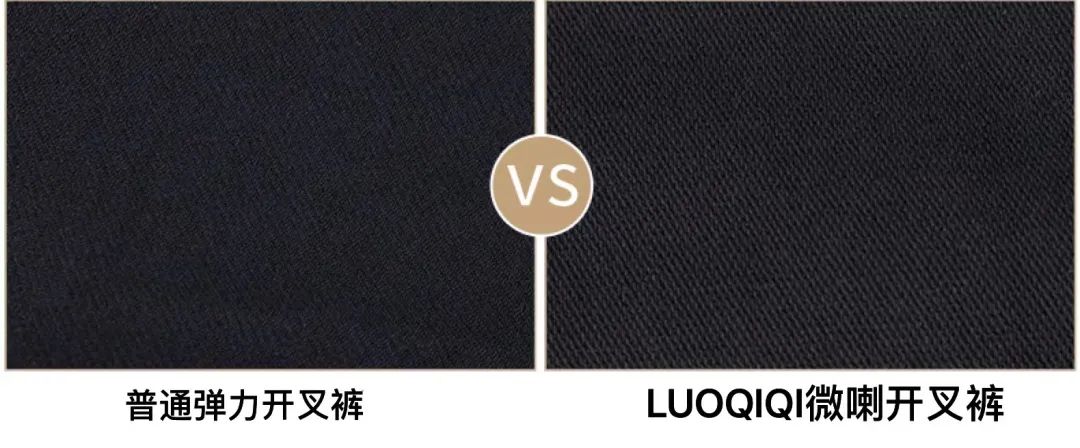 普通弹力开叉裤,面料偏硬,摸起来刺刺的,穿几次屁屁就起球抽丝了...如果上着班穿这么一条没有质感、屁股全是白丝的裤子...多尴尬!而LUOQIQI家这款摸起来就很有西装裤的丝滑细腻、柔软、舒舒服服~比起普通黑色开叉裤,LUOQIQI在穿着感下了功夫:它采用的是高弹力锦棉,超级亲肤又柔软,给人无感穿着,很棒的感觉!虽然是黑色,但是沾水也不会掉色哦!穿起来会一直像新的一样~