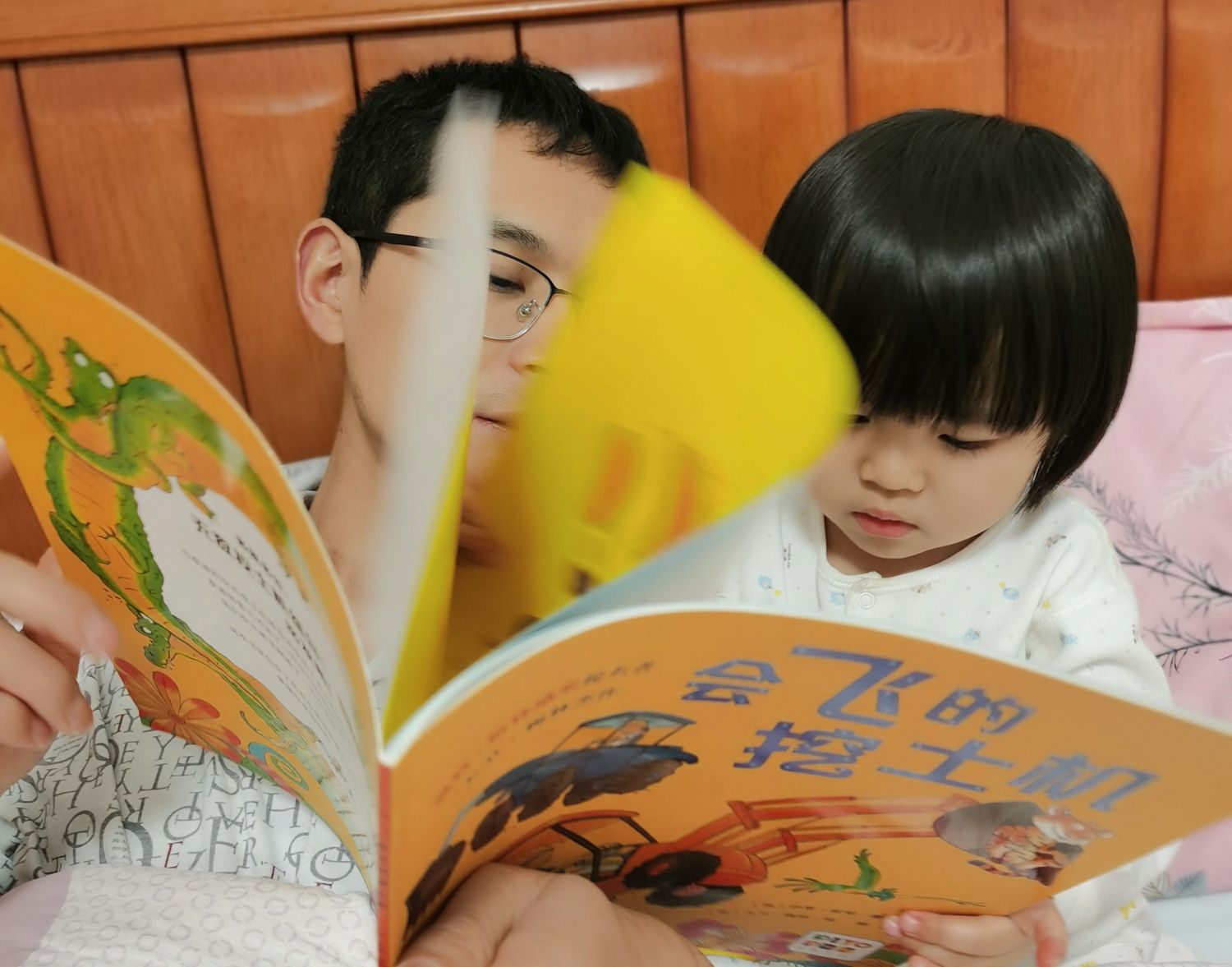 亲子共读从一个人的单打独斗到队友也可以坚持陪读,《会飞的挖土机》是小男孩的最爱,我家小美女也是车迷一族,百看不厌。