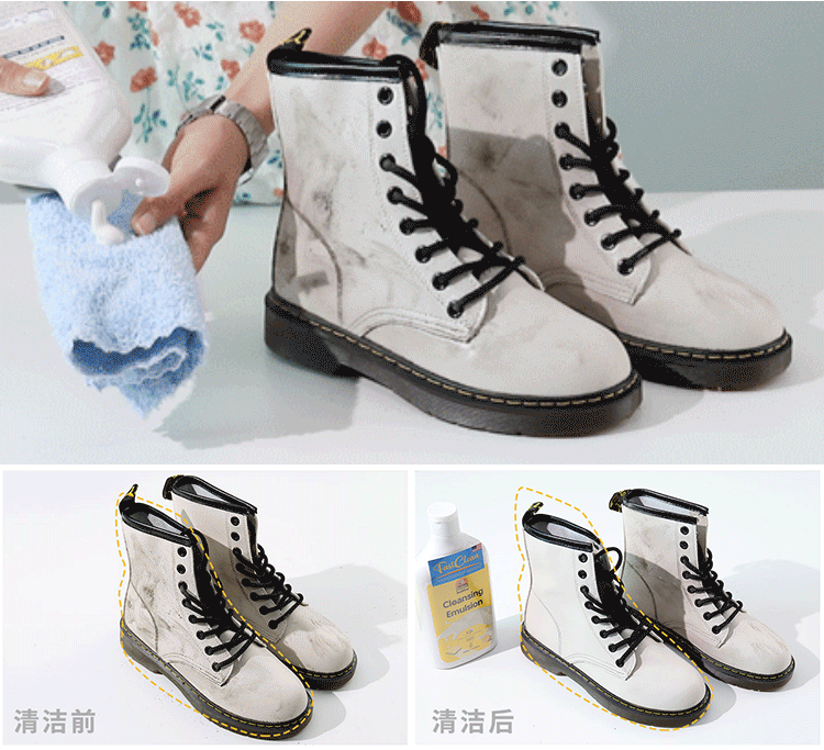 拿清洁乳抹一抹,鞋子立刻洁白靓丽,省时省力,不用担心开胶问题。