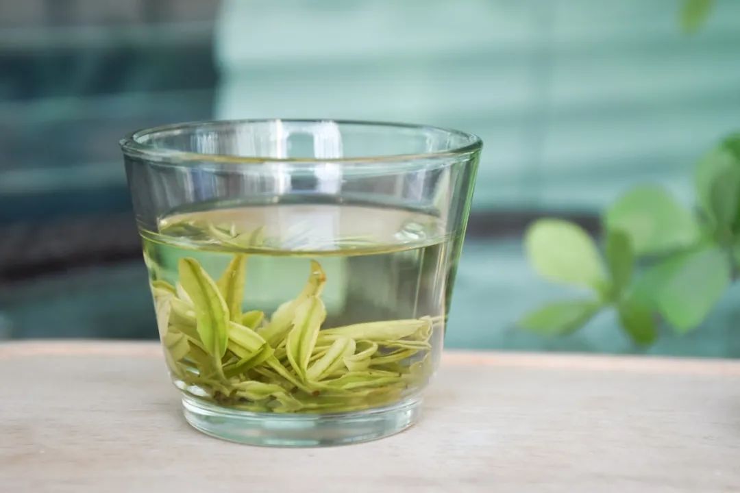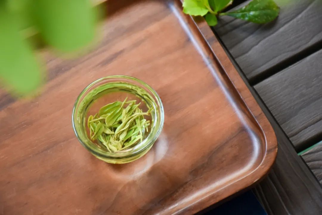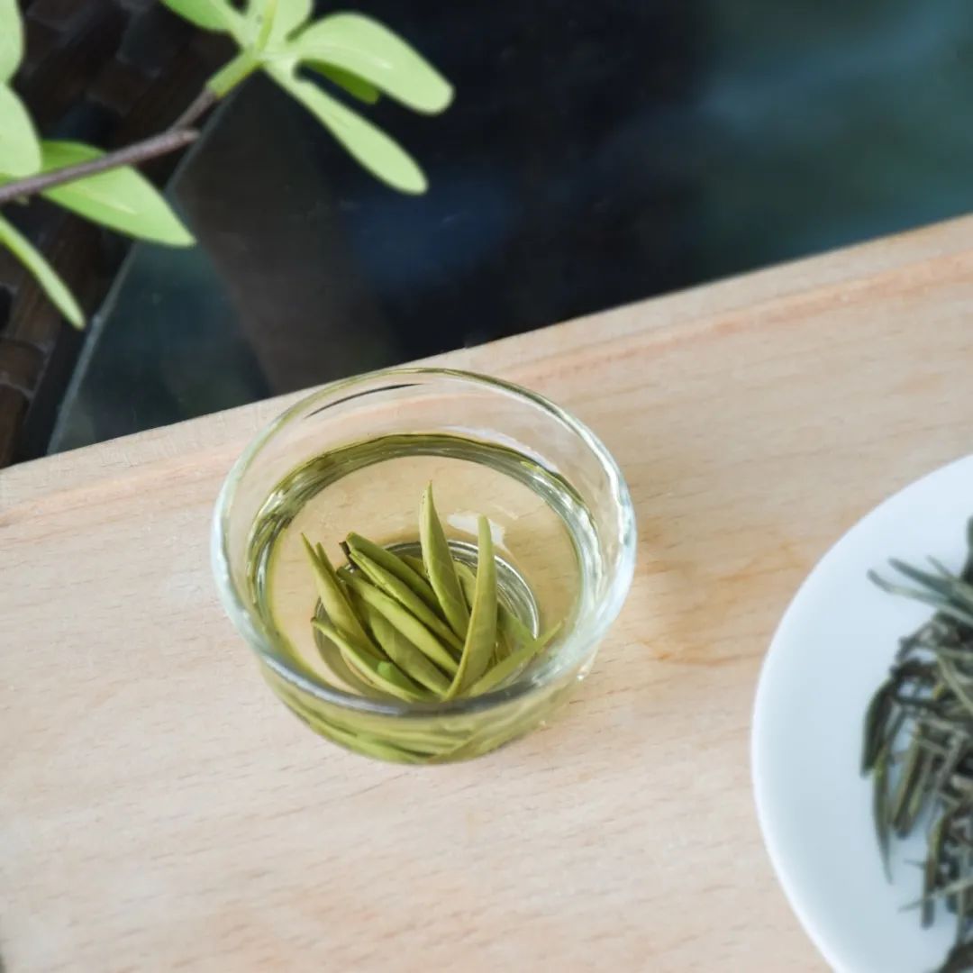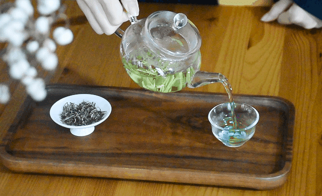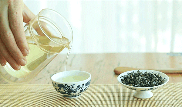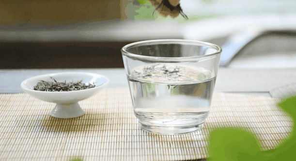 先倒一半开水,温度在80℃-90℃之间,不加杯盖,茶叶舒展如剪,翠似新芽。