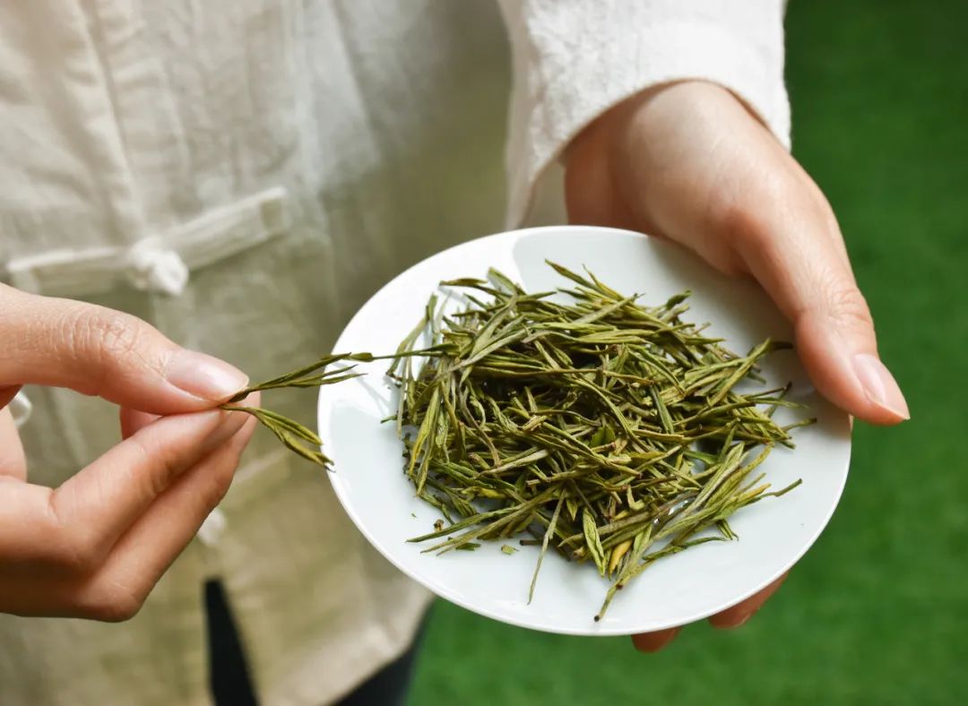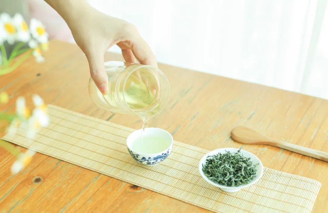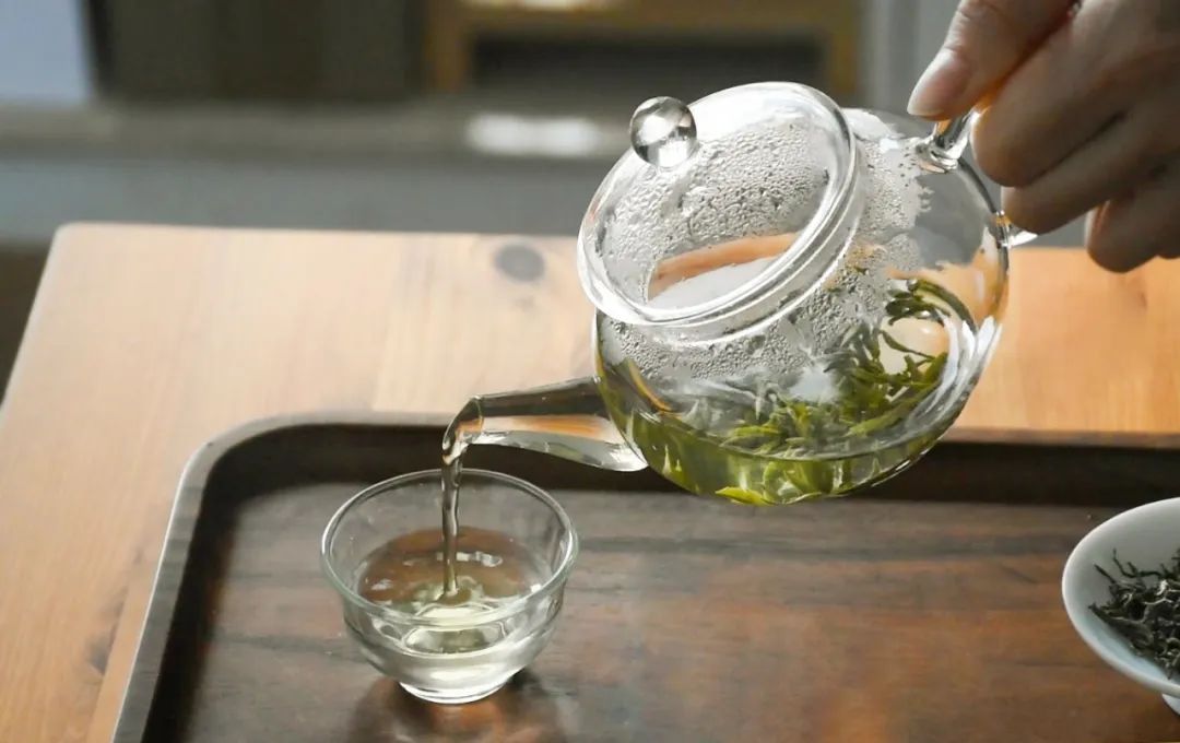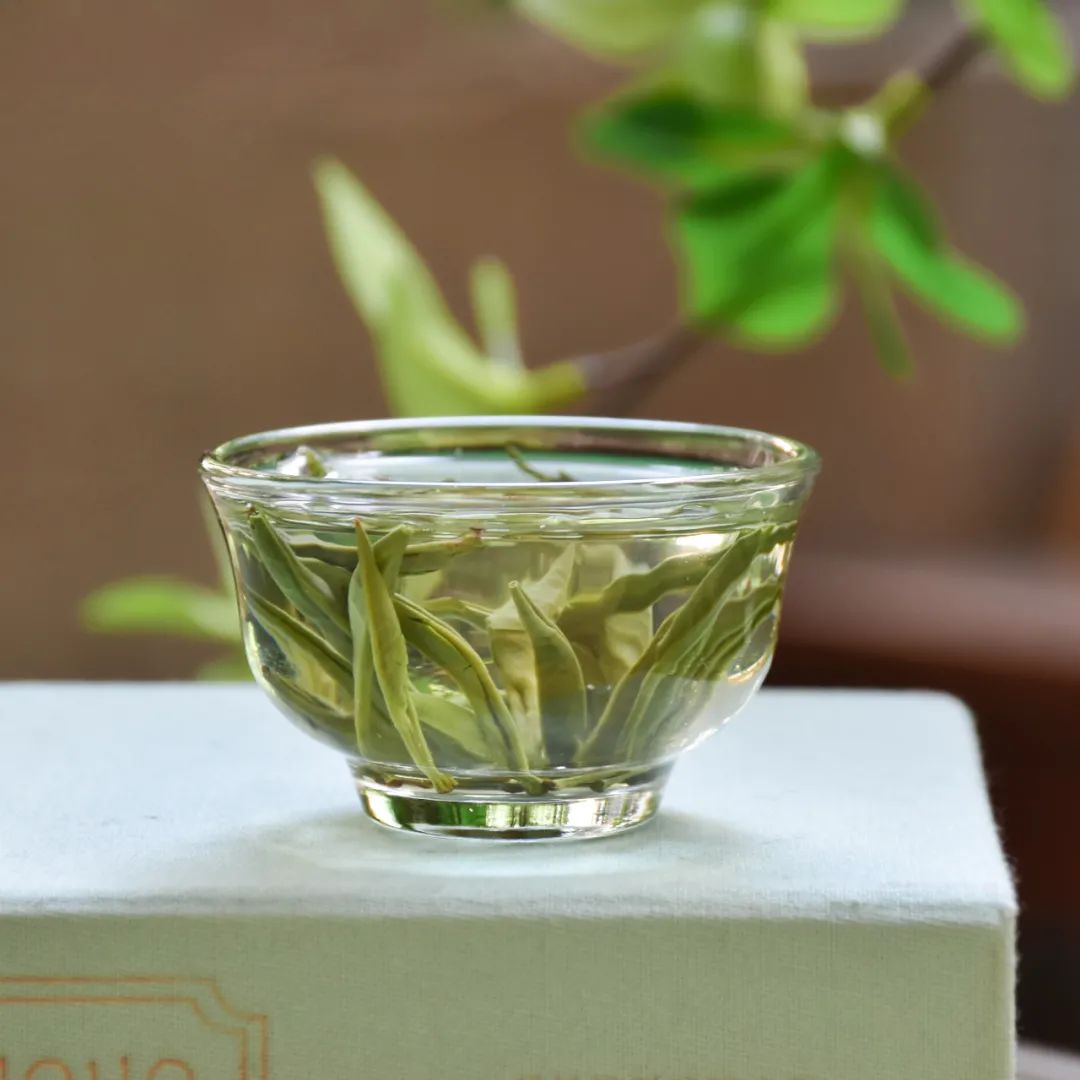 先倒一半开水,温度在80℃-90℃之间,不加杯盖,茶叶舒展如剪,翠似新芽。