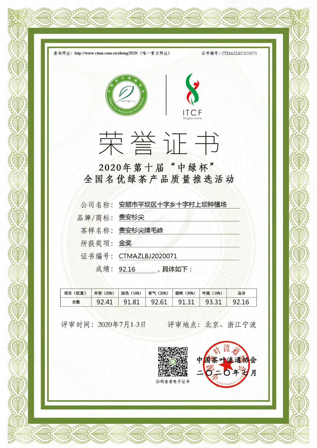 2017、2018年在贵州省“黔茶杯”中获一等奖,2019年获特等奖
