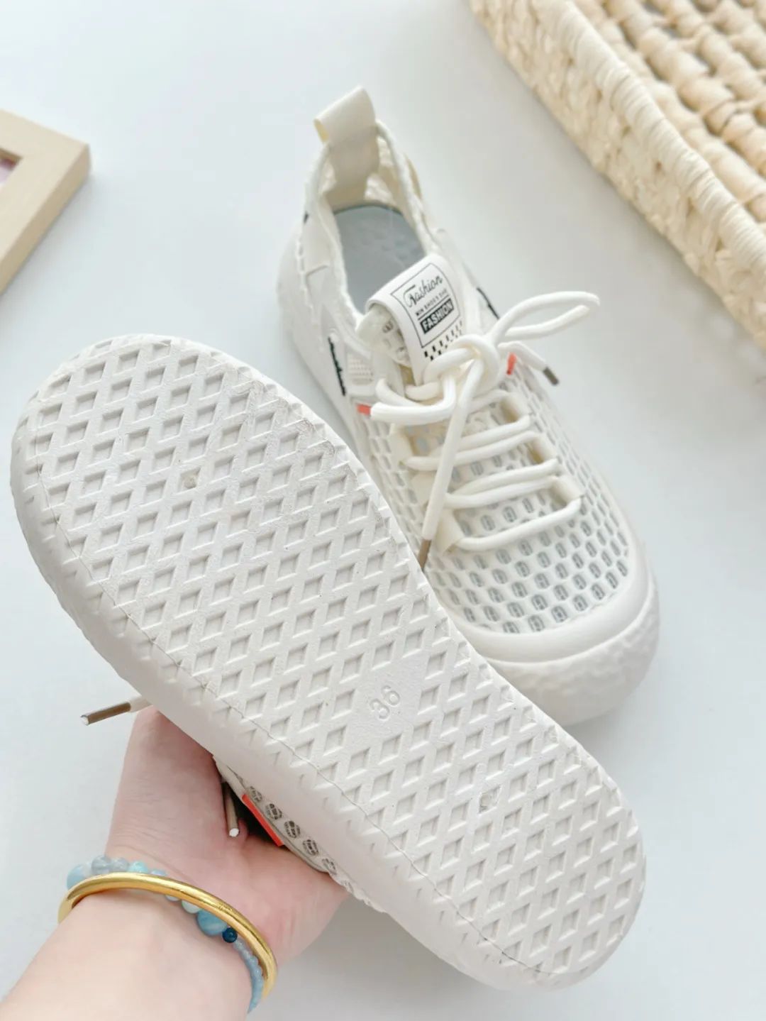 飞织面料+镂空设计,让脚丫子大面积肌肤和空气贴贴,整个一清凉buff拉满~