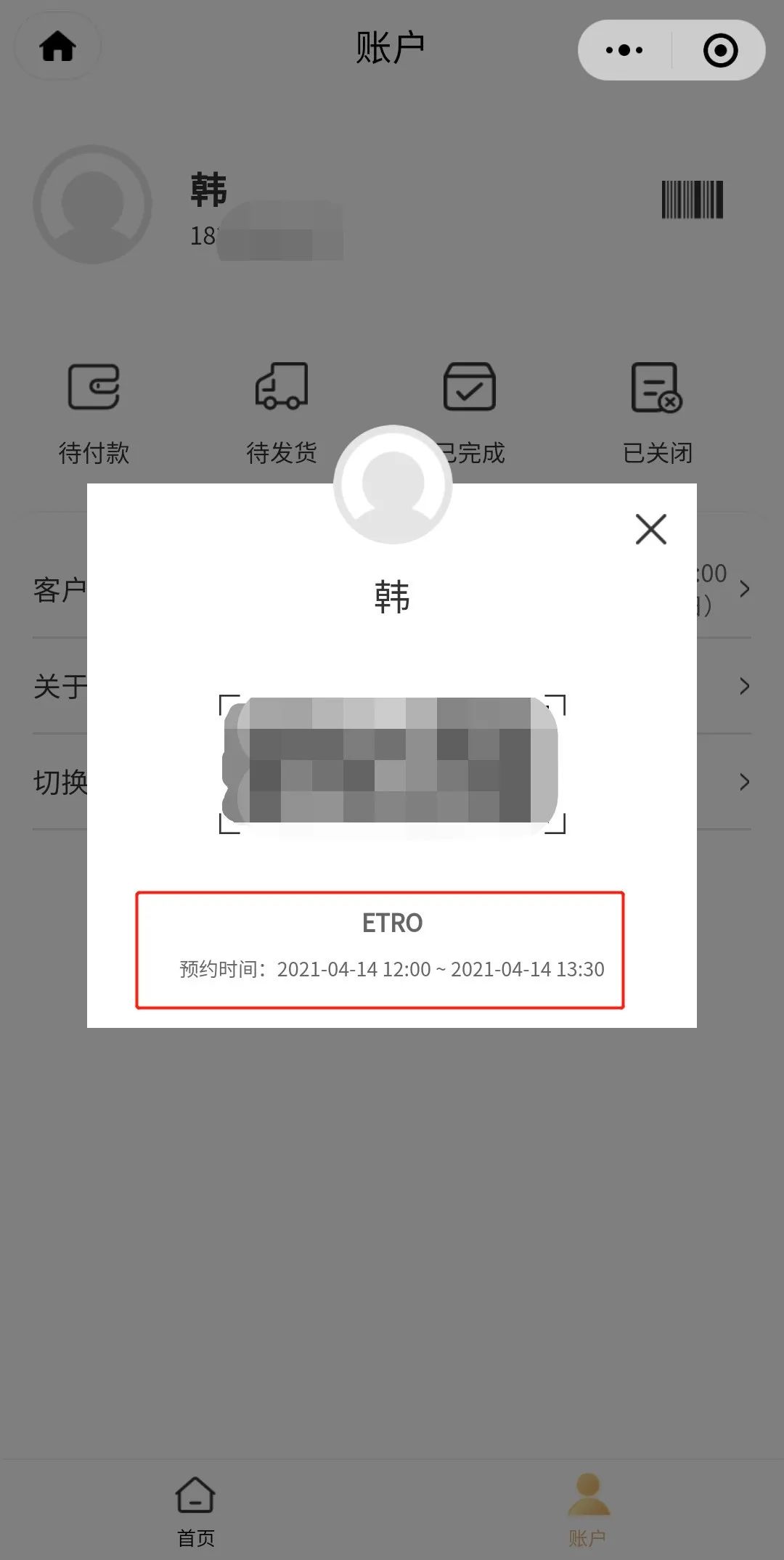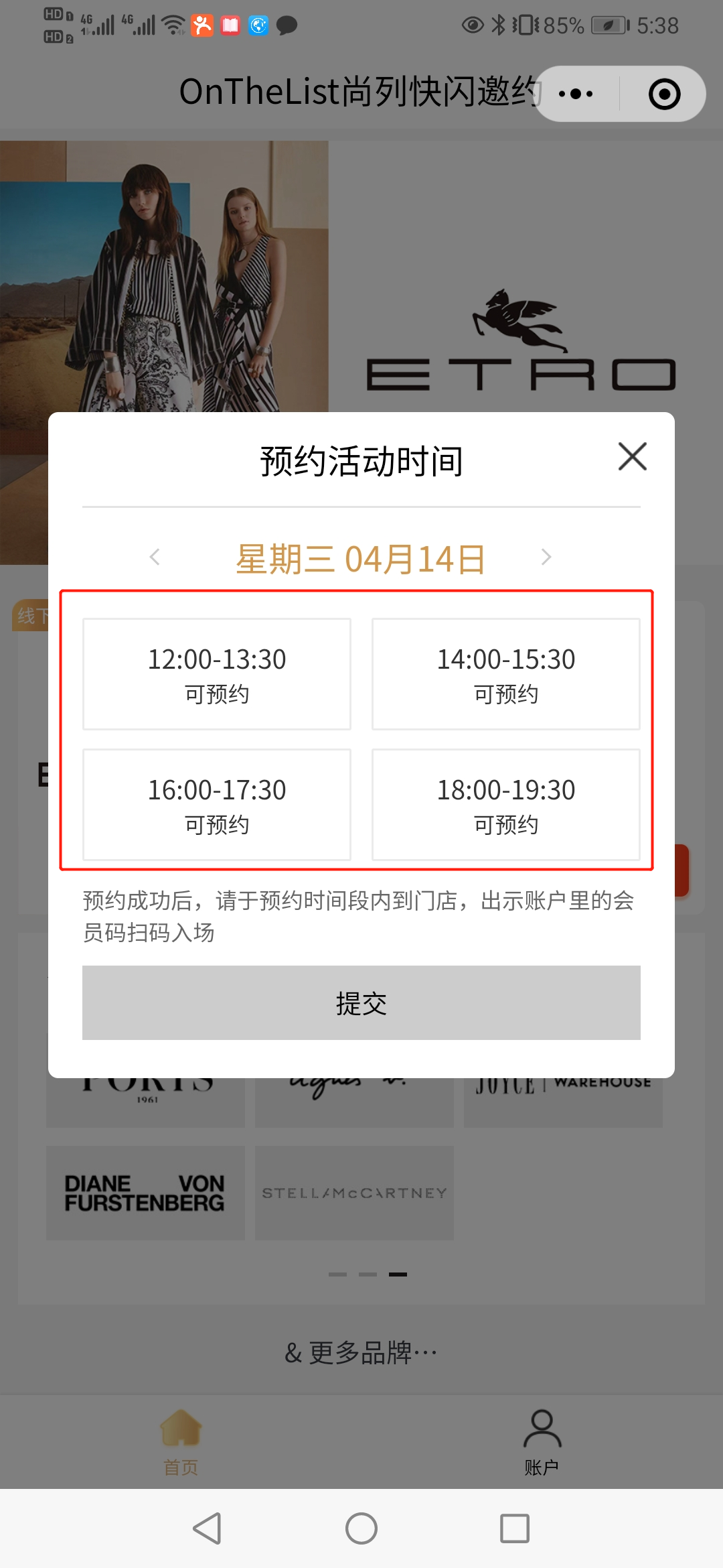 3. 预约成功后,在“账户”界面可查看预约时间