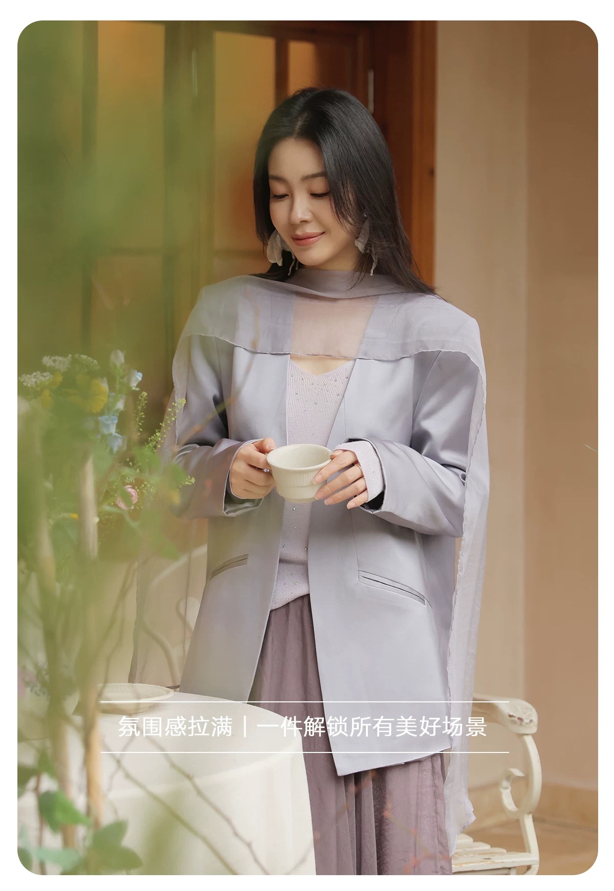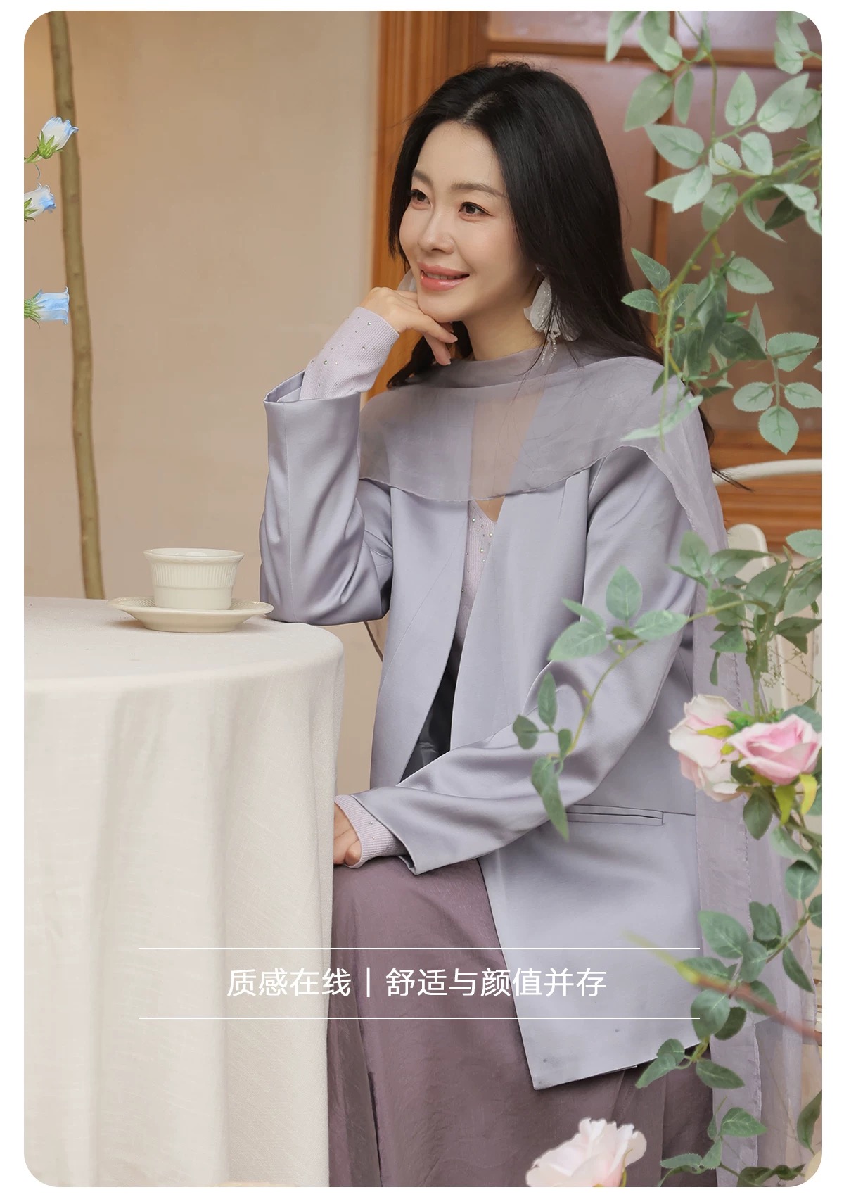 低饱和灰调紫西装,内敛温柔