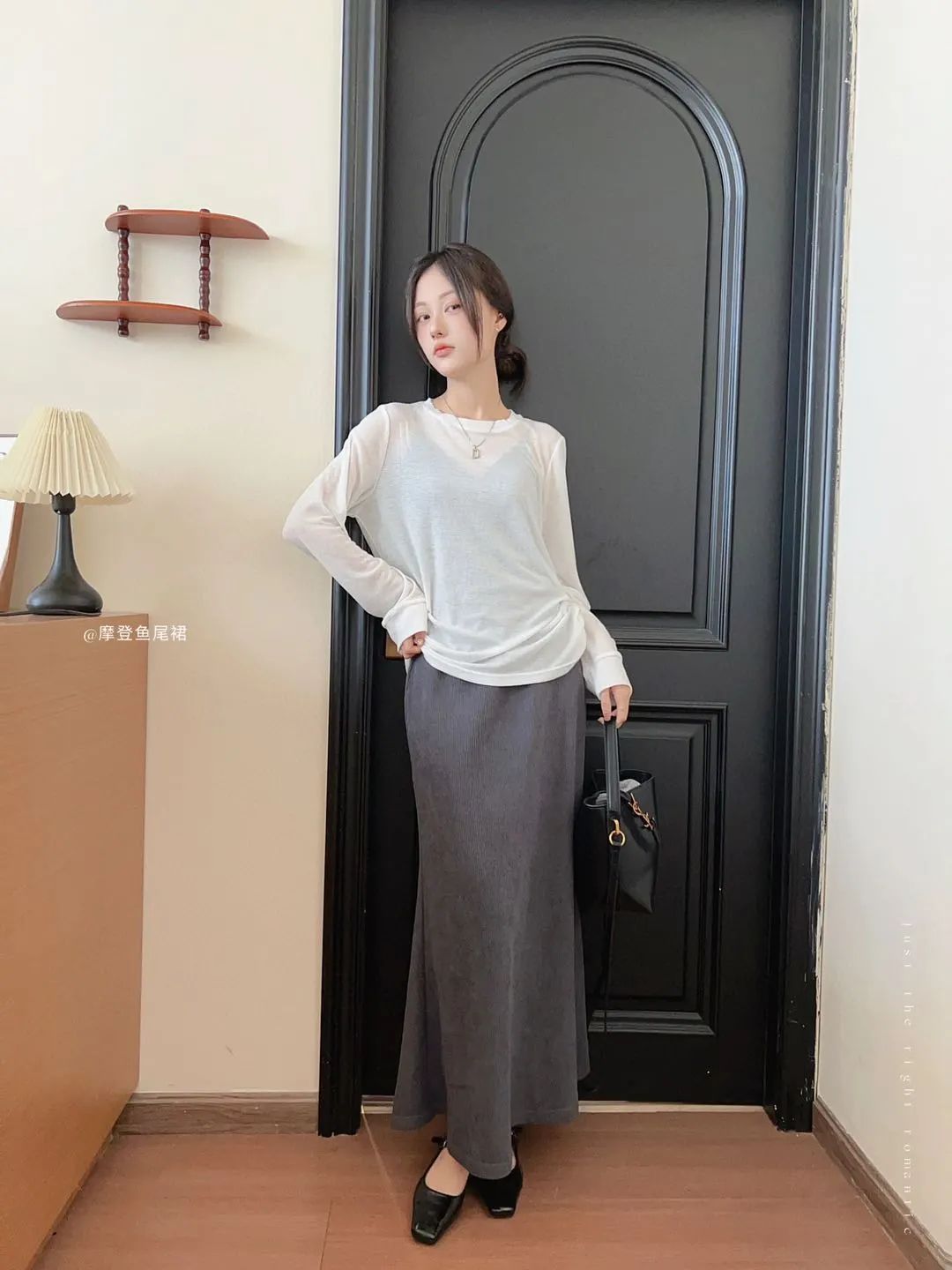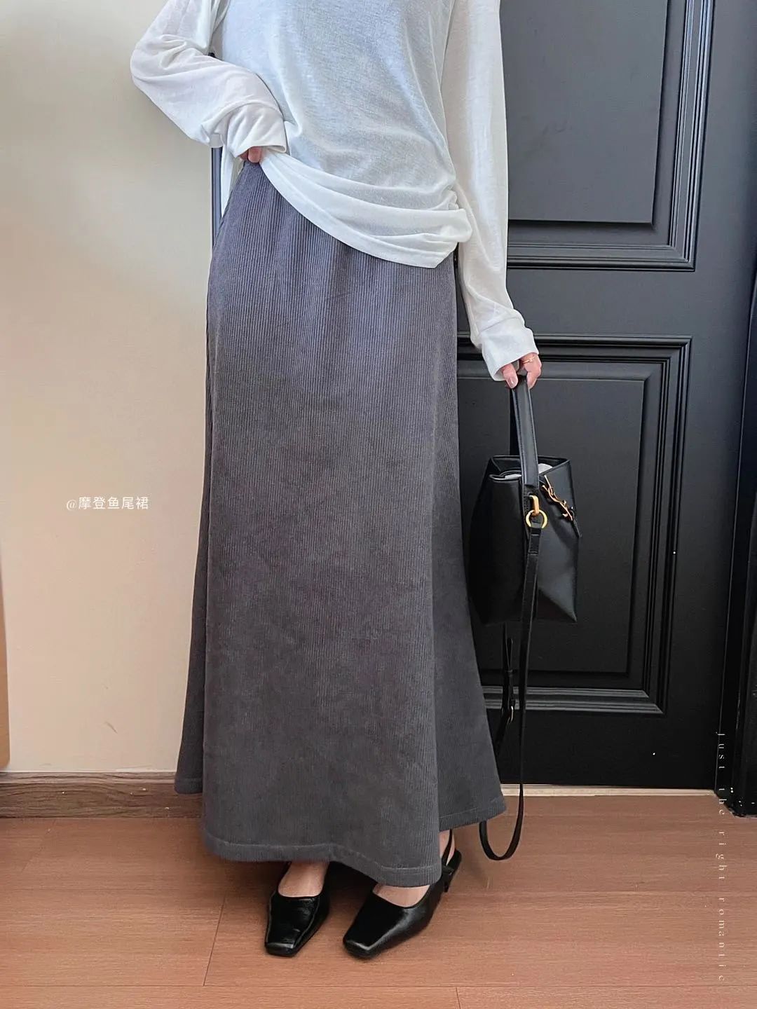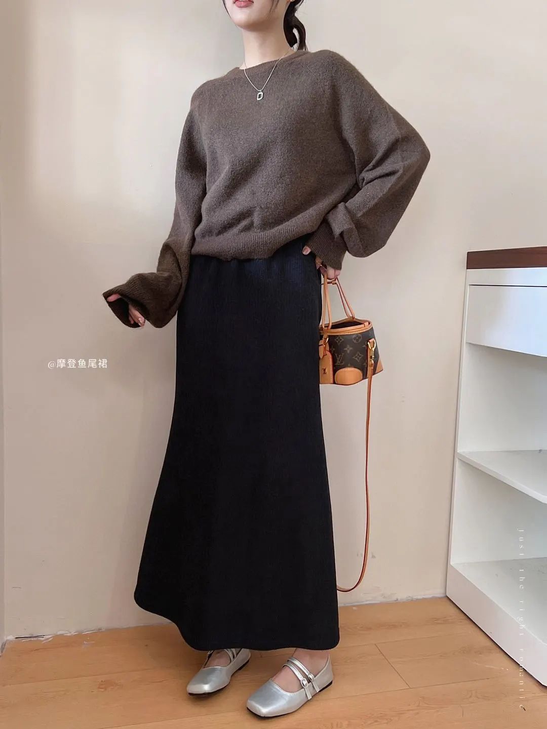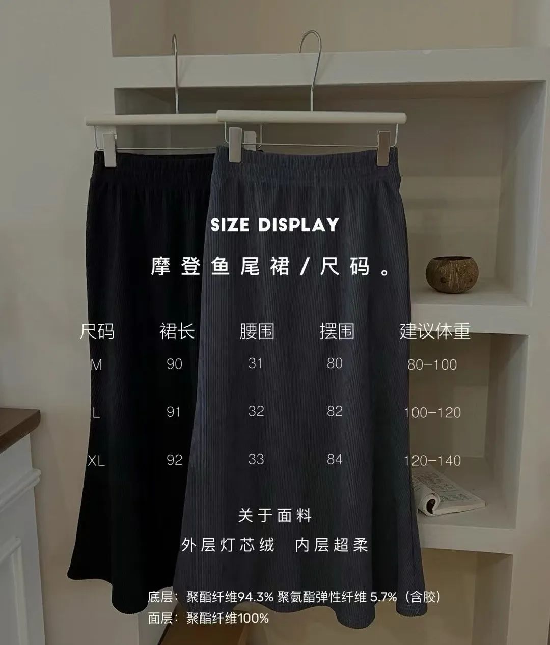 作为一个资深梨形身材今天就给大家分享一款专属于秋冬的「高克重灯芯绒人鱼裙」。上身自带厚度又有垂坠感。从视觉效果到温暖程度,都可以直接打满分💯!