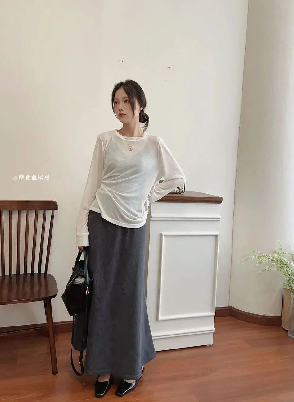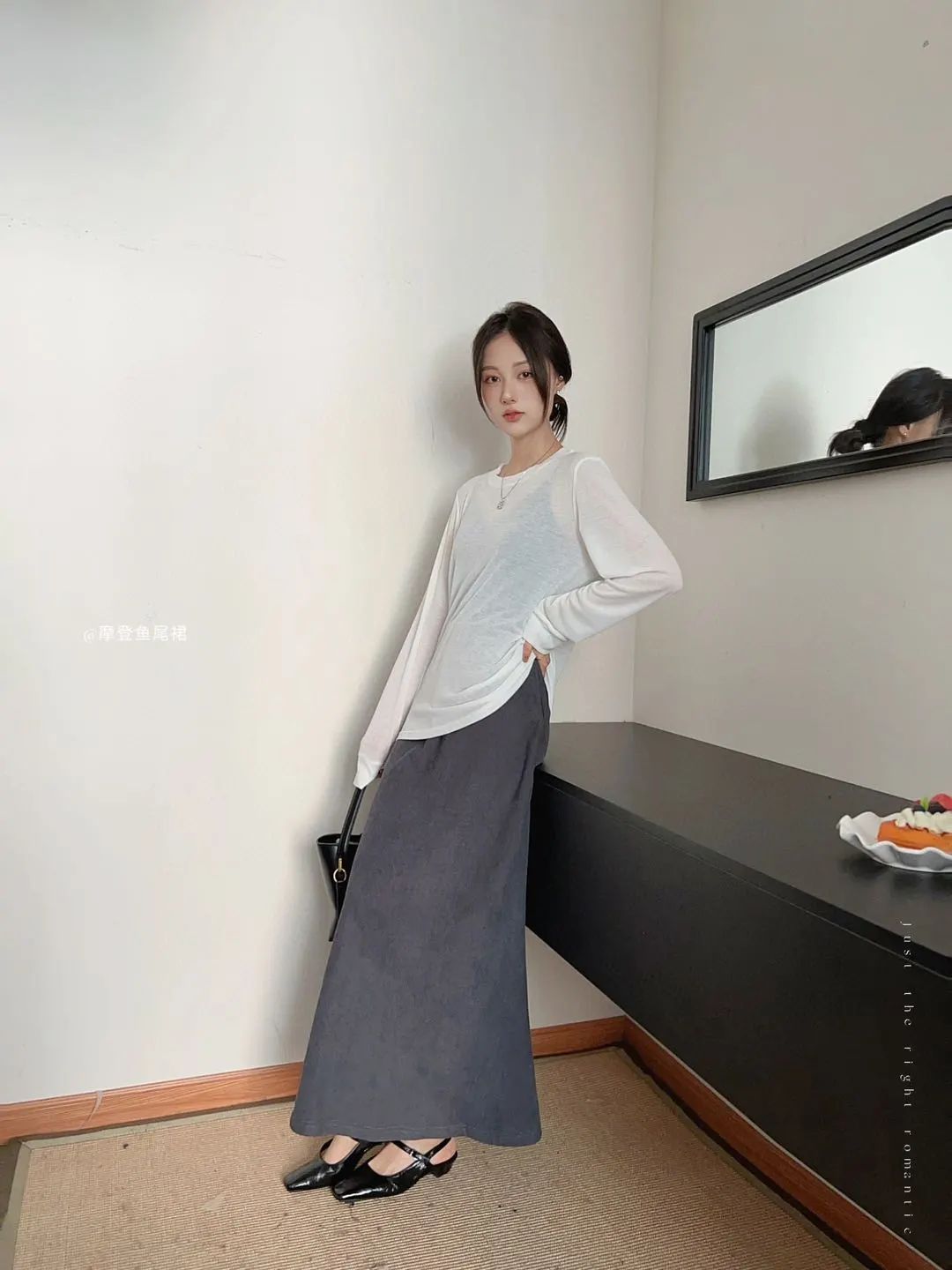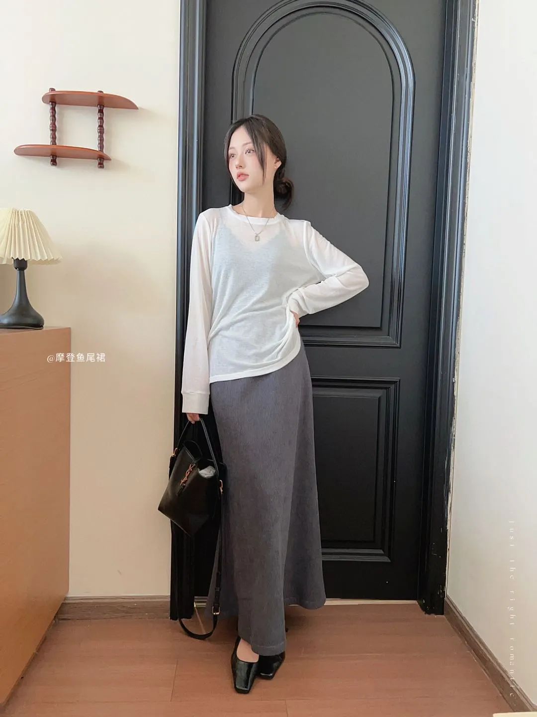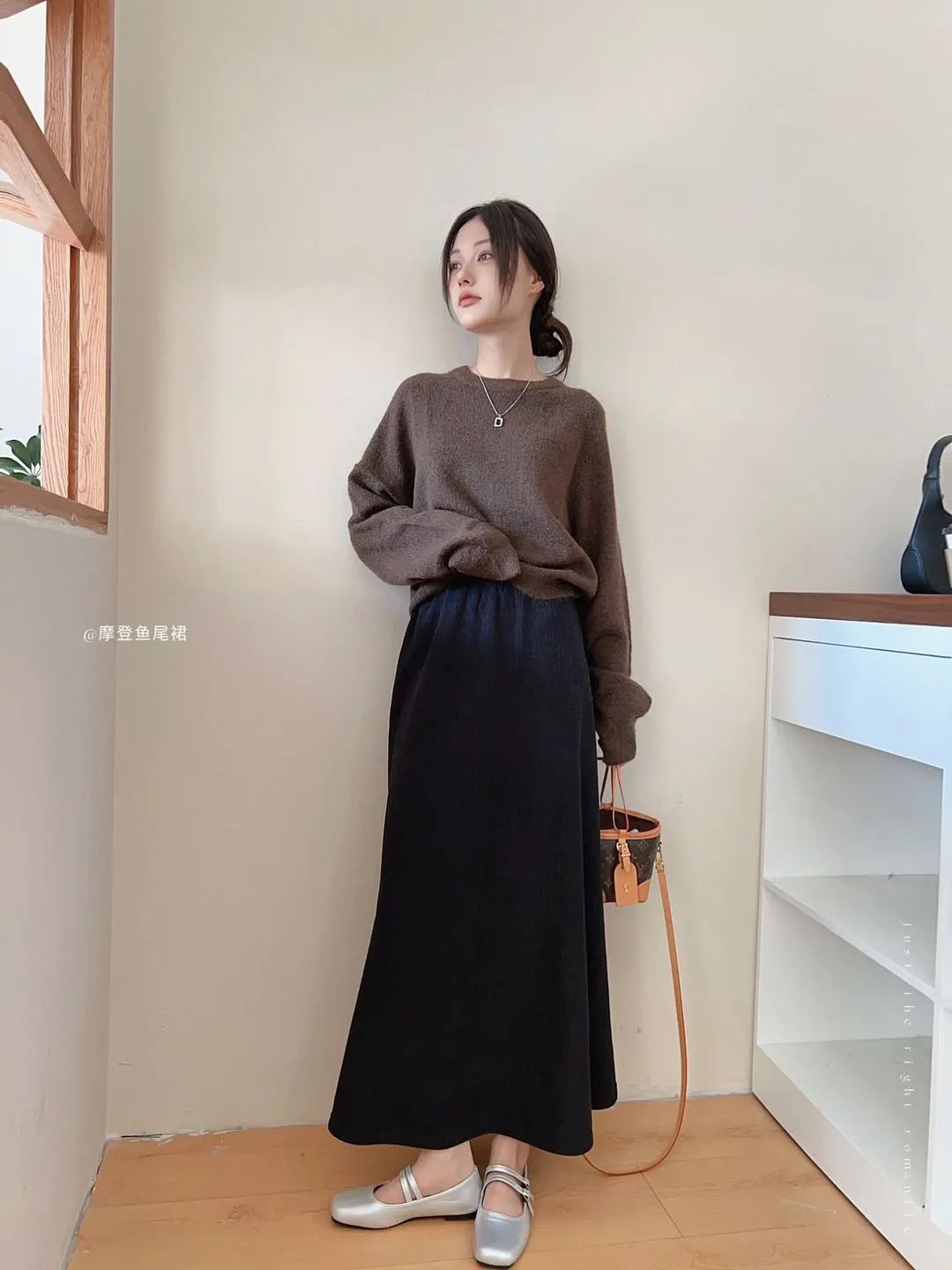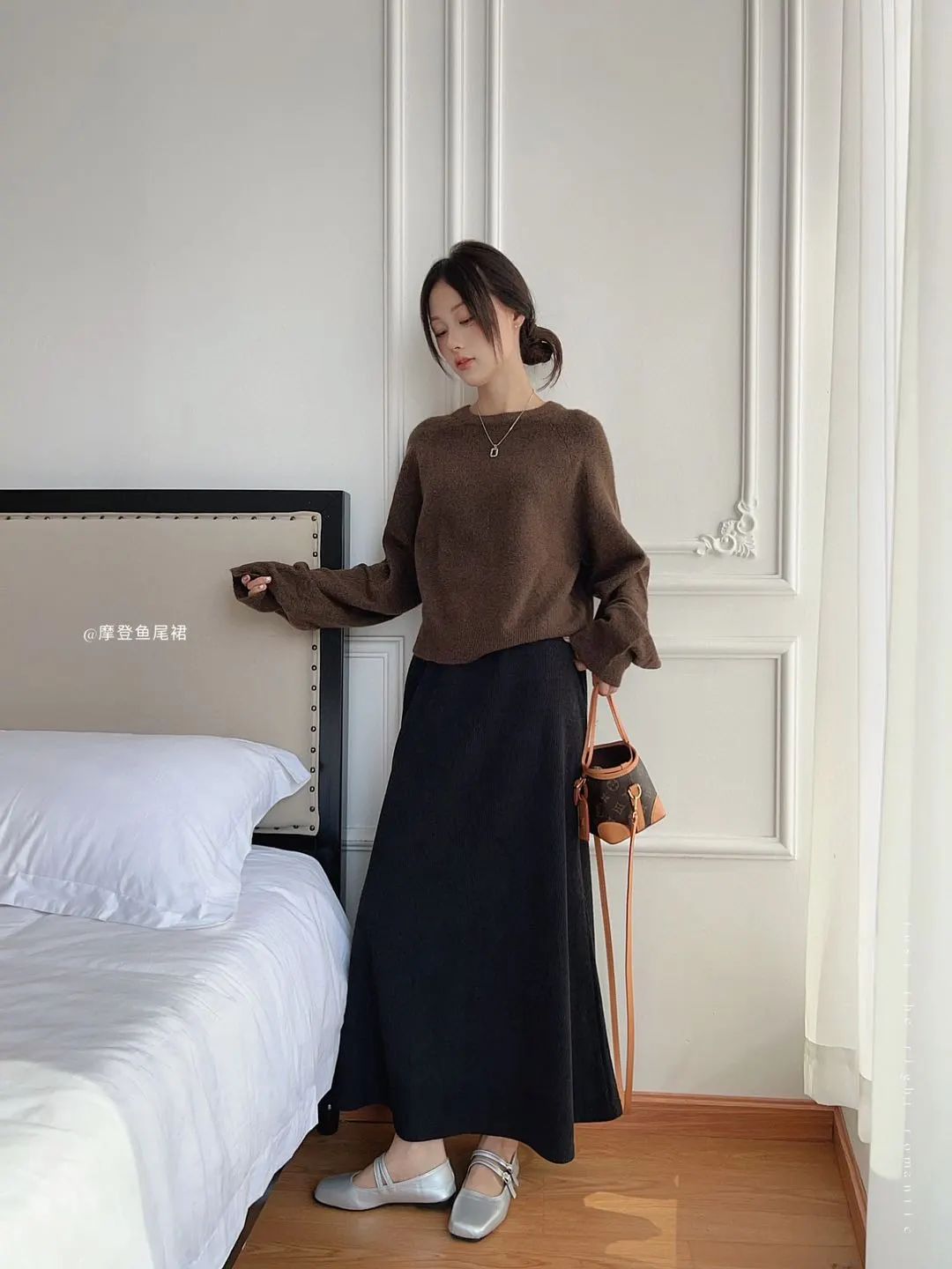 作为一个资深梨形身材今天就给大家分享一款专属于秋冬的「高克重灯芯绒人鱼裙」。上身自带厚度又有垂坠感。从视觉效果到温暖程度,都可以直接打满分💯!