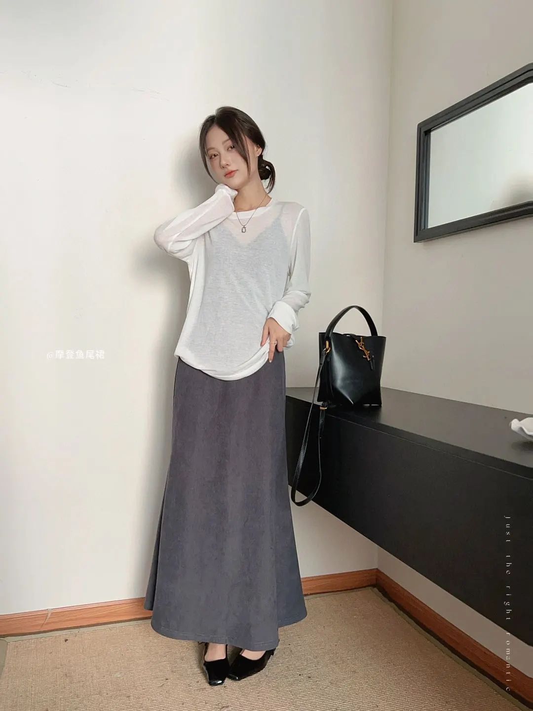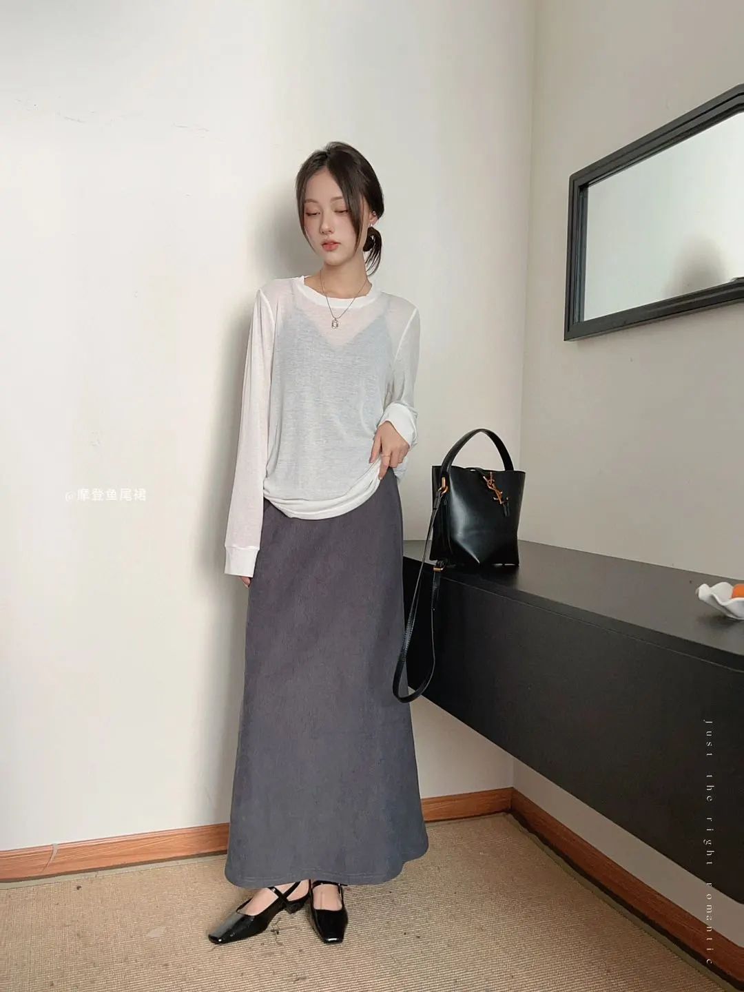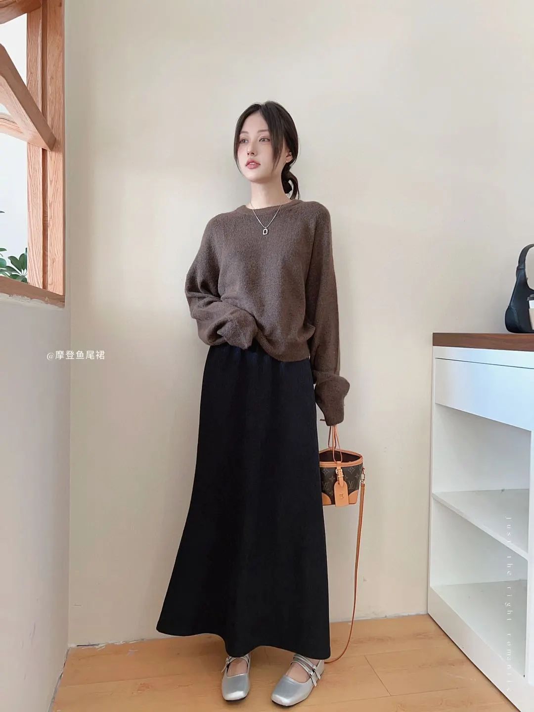 宽松的鱼尾半裙不仅上身遮肉超显瘦,还显得气质好好~
