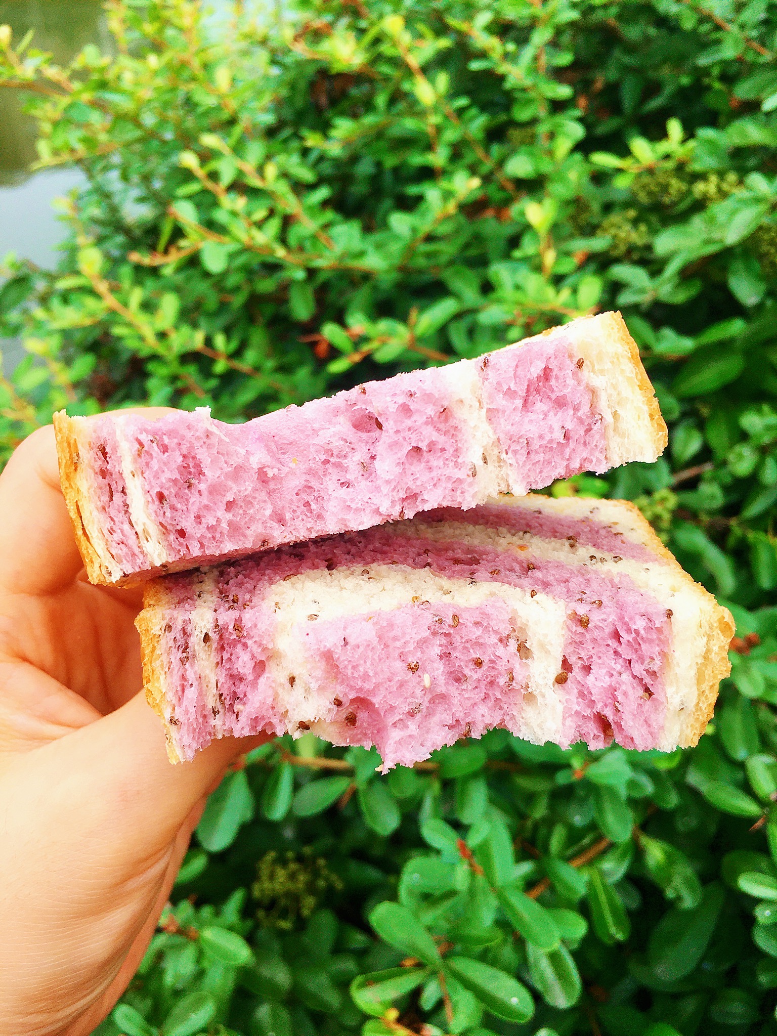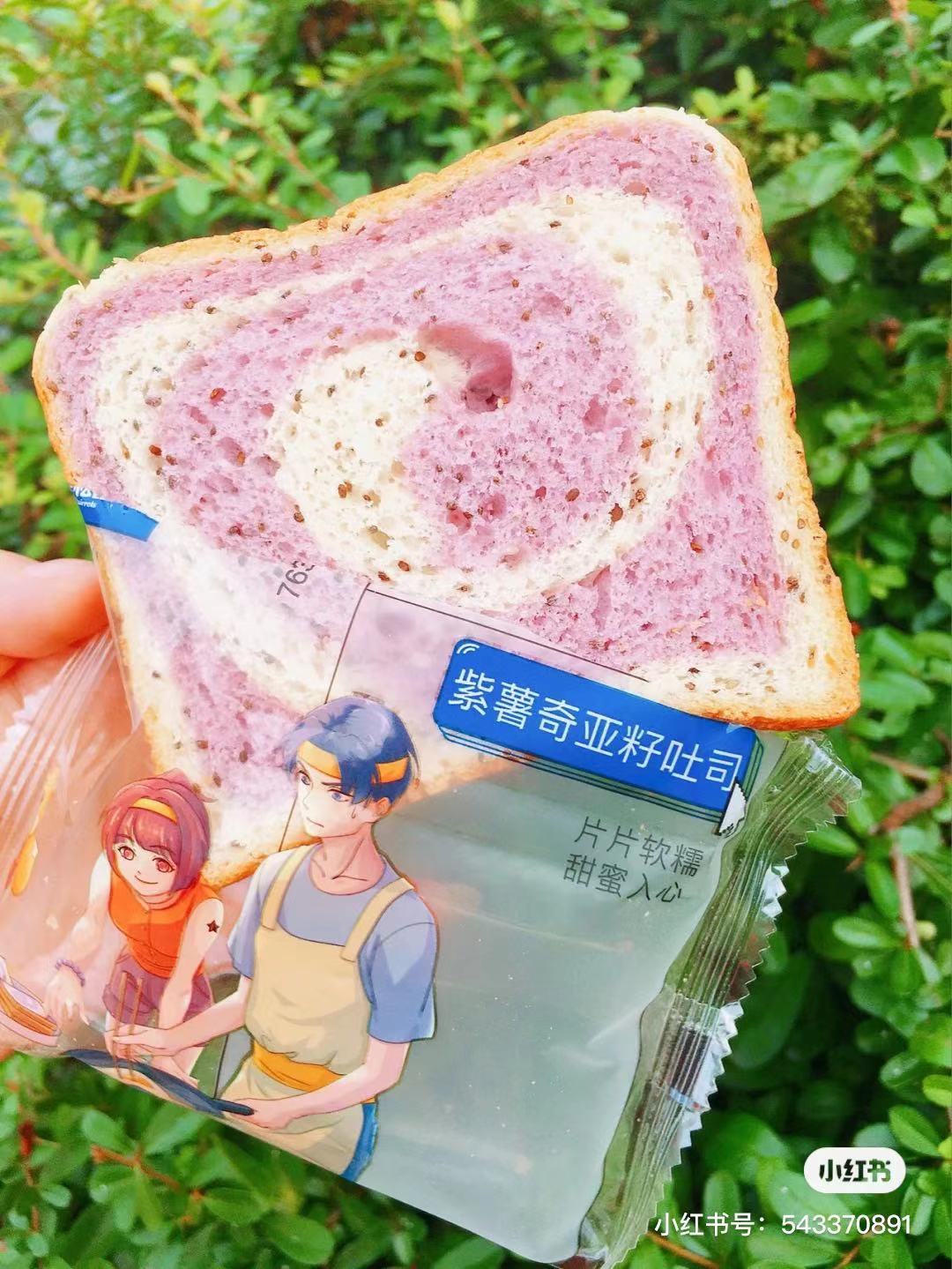 🍞吐司松软绵实的口感,咬一口在嘴里湿湿软软,嚼起来有紫薯的香甜,奇亚籽谷物脆脆的在嘴里爆开,简直太奇妙了!