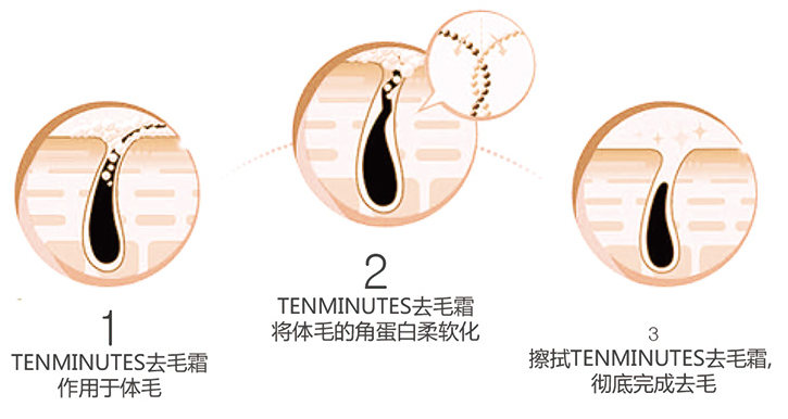 它的脱毛原理是短时间溶解体毛