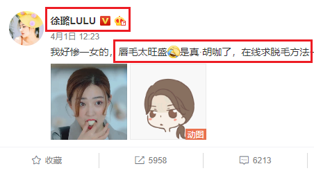 徐璐就在微博说过自己体毛重的问题