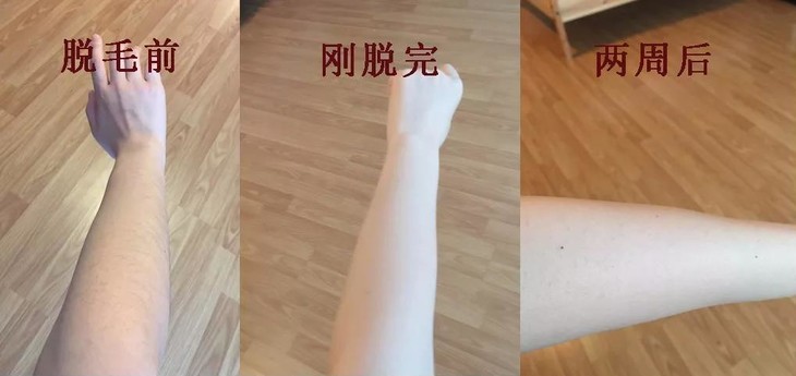 用户的手臂、腿和腋下的使用前后对比图