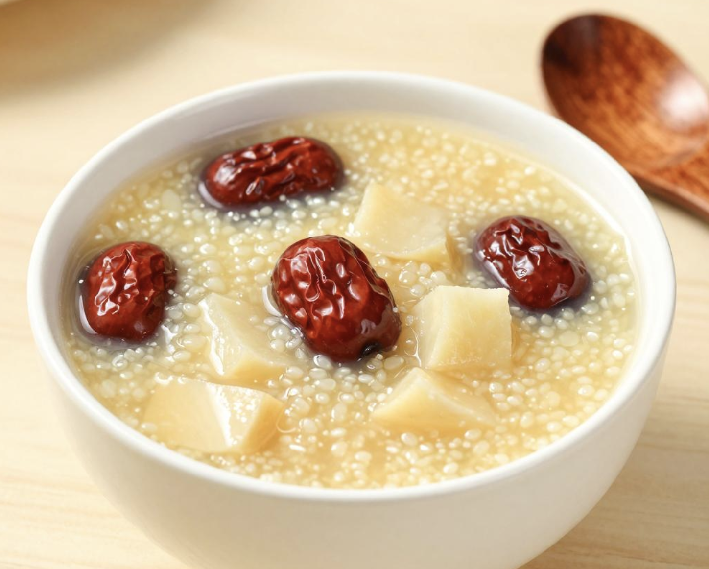 做法:山药去皮切小块,小米洗净后与山药、红枣一同加水煮沸,转小火熬30分钟,出锅前加入枸杞。