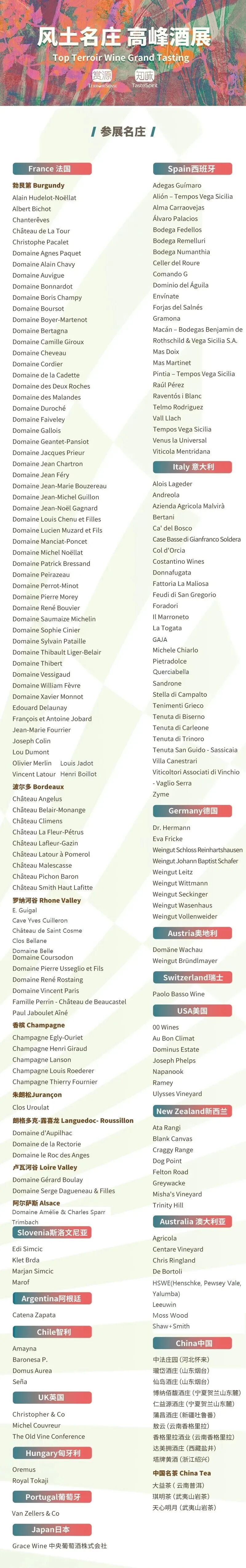 上下滑动查看全部参展酒庄茶庄名单↕️