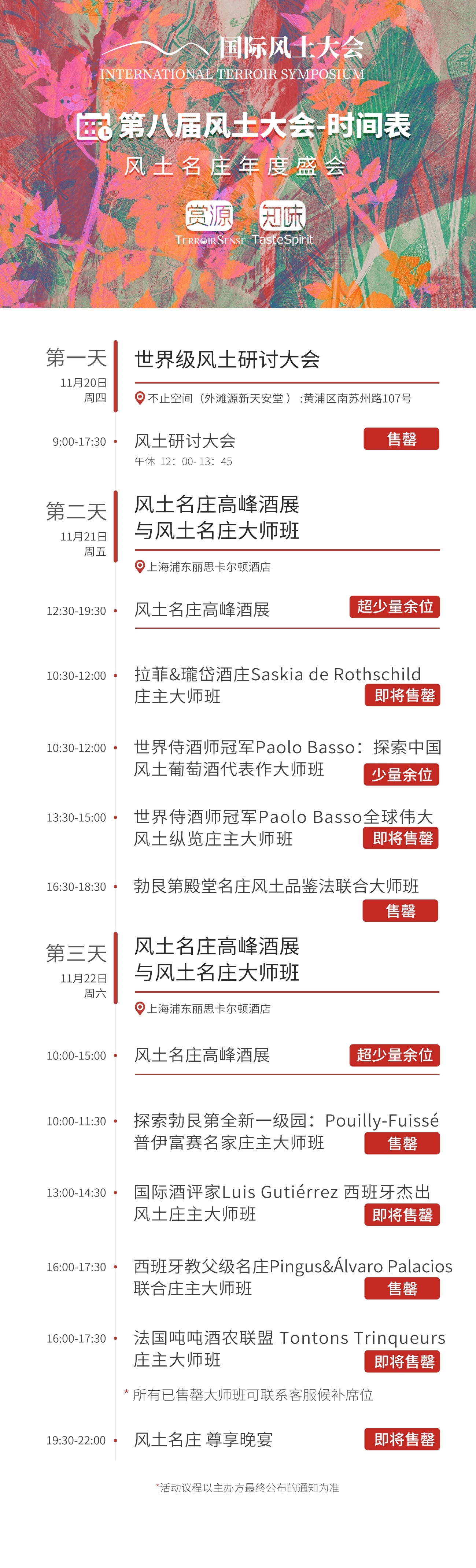 今年风土大会的全部活动均已发布,多场活动已经售罄,剩余场次也仅余个位数席位,点击下方日程表可进入报名页面抓紧报名: