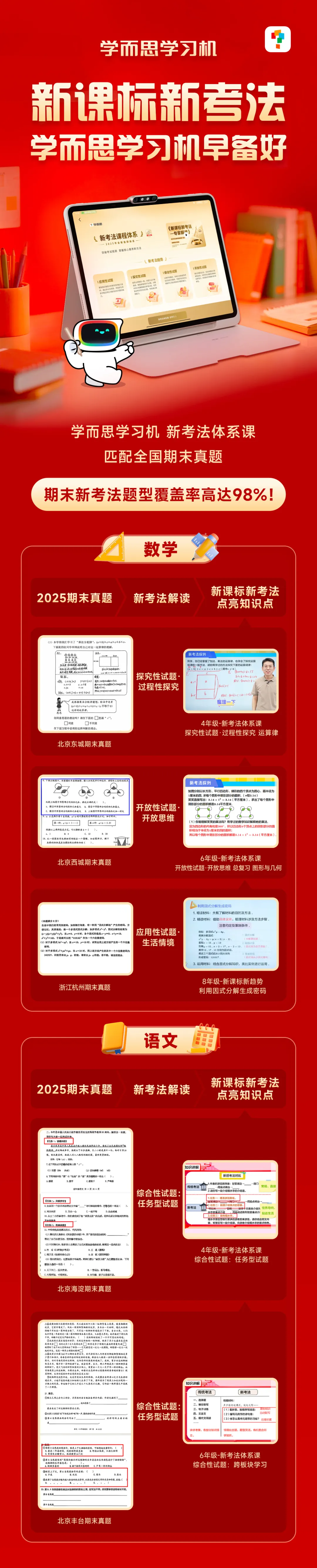光有新课标的同步课还不够,不能很快地实现“提分”,因为新课标倡导的创新思维/实践应用/跨学科融合等“新考法”题型,已全面渗透到期末测试中,几乎成为了期末考试的“标配”。