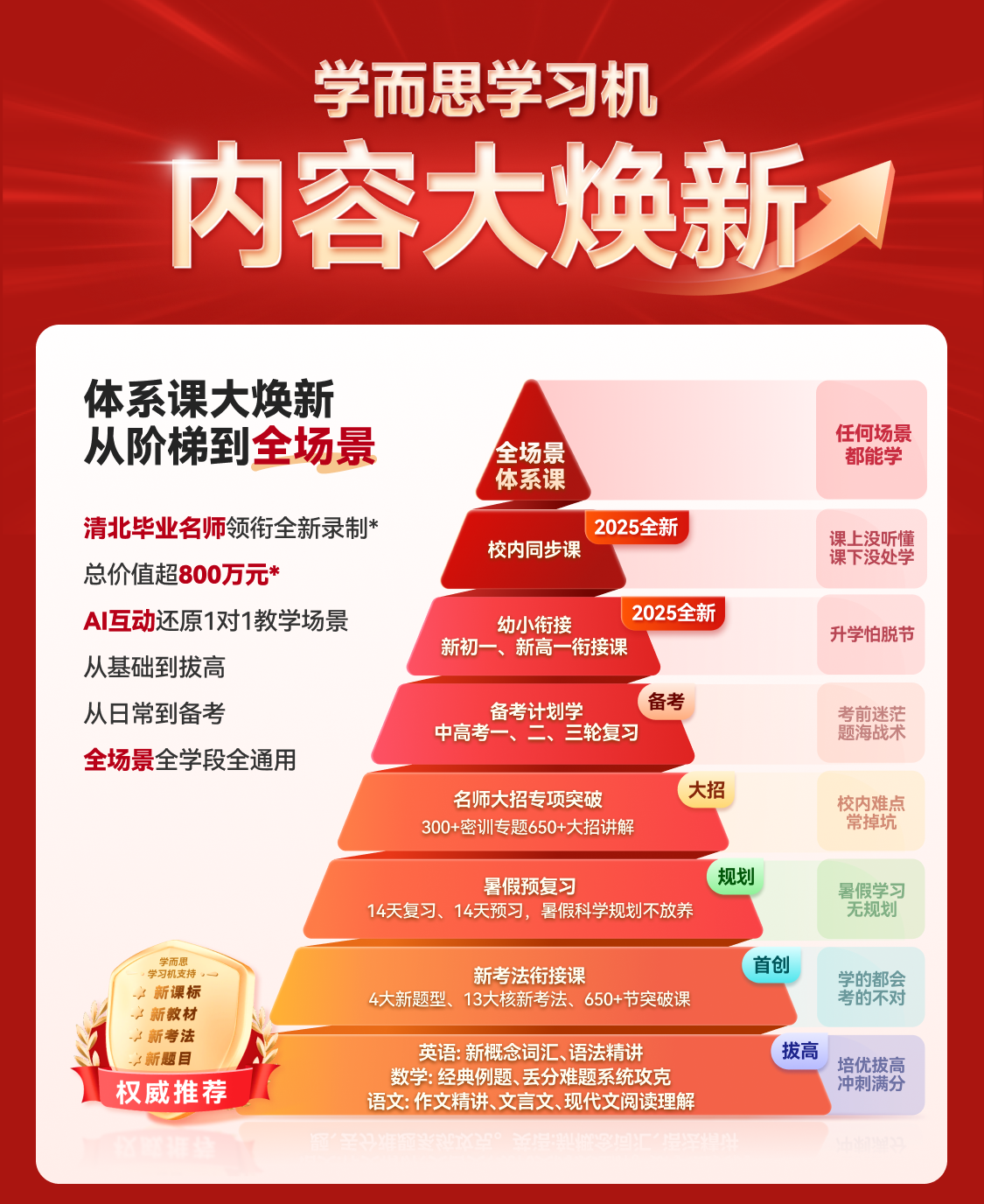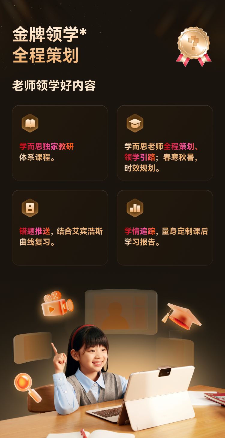 也就是说,学而思3000+教研师资团队,可以保证内容侧一旦出现新课标调整,就能迅速迭代,保证学习机内置的都是最新最活的课程和题库,实现“机器不换,内容常新常活!”