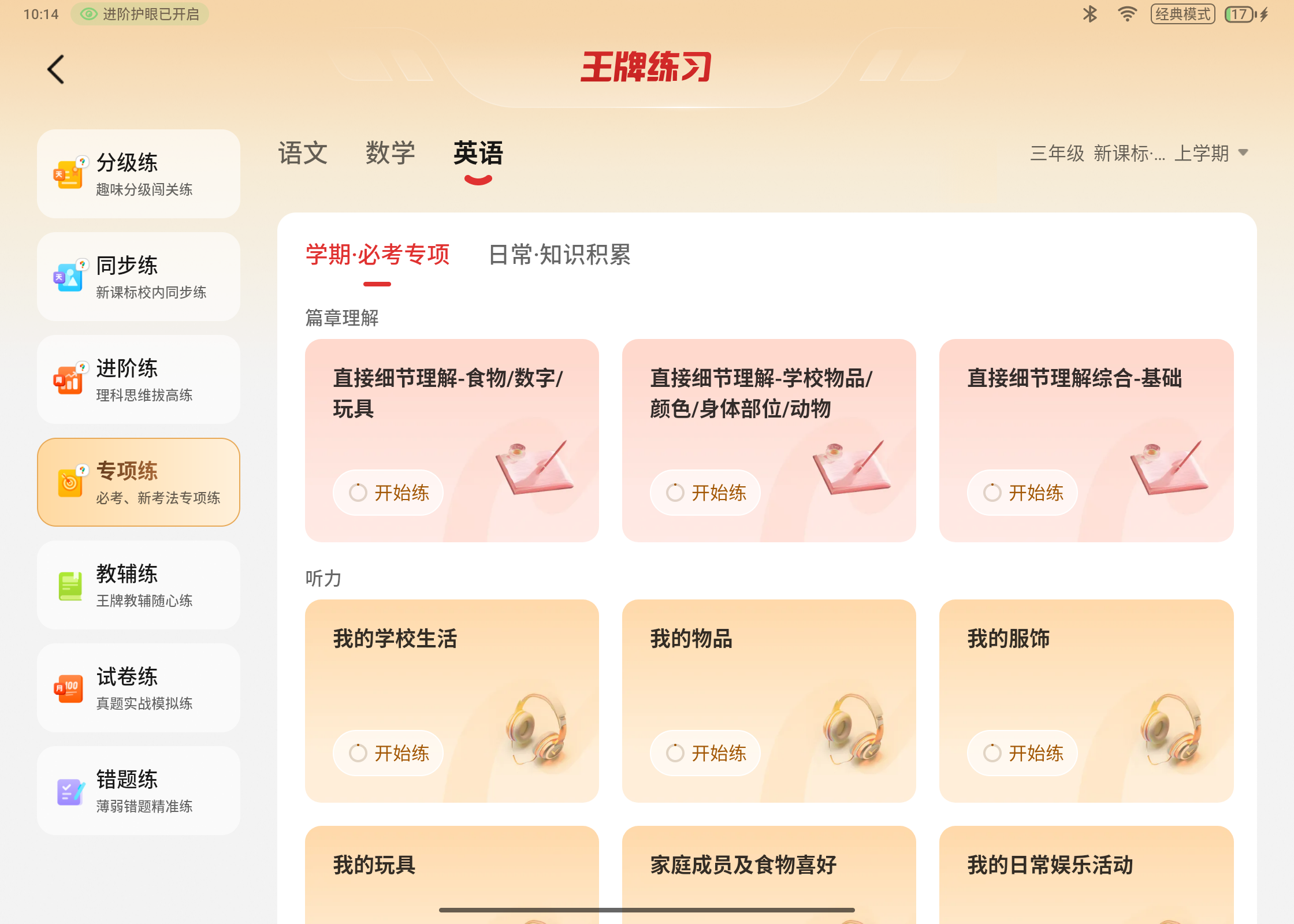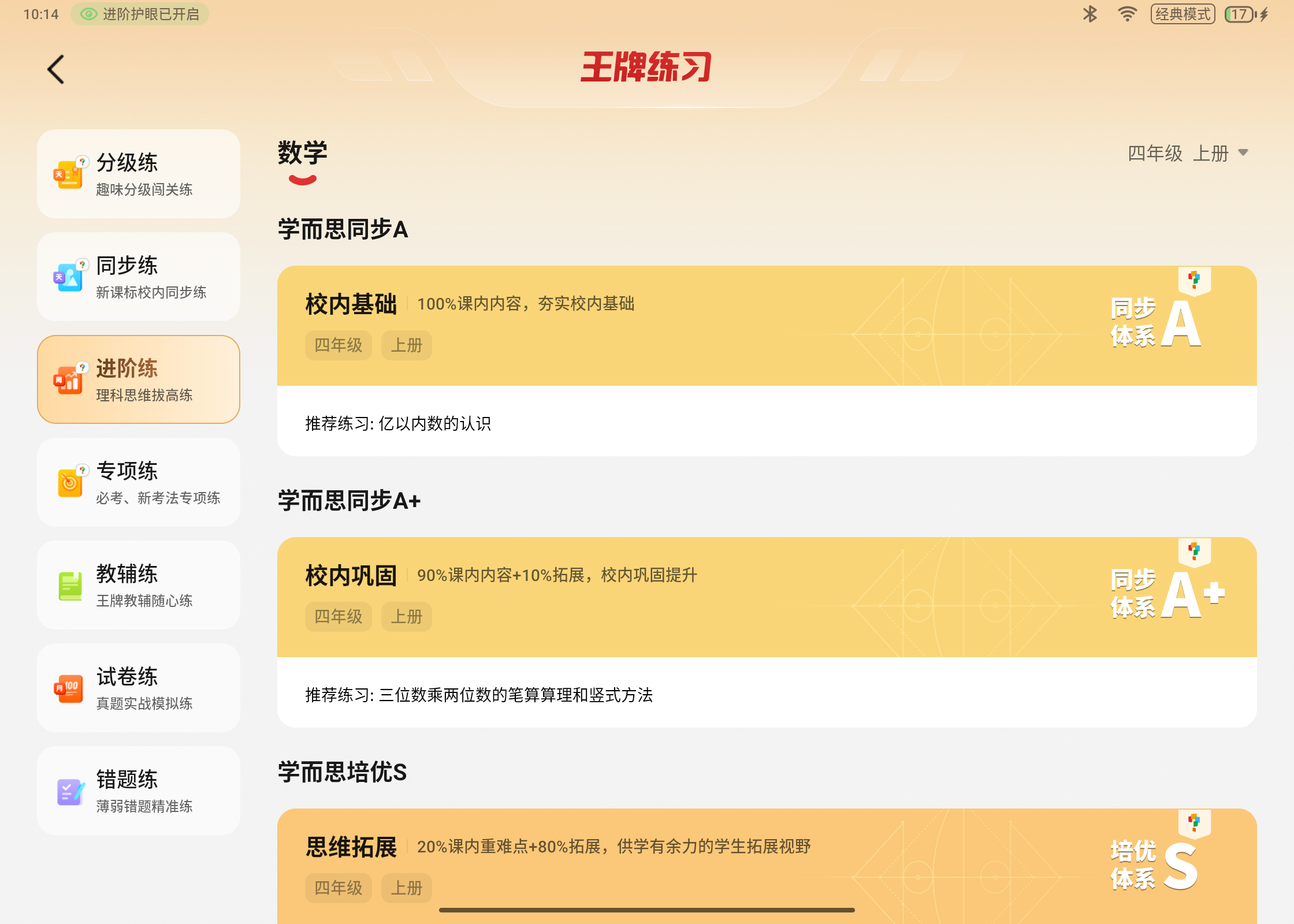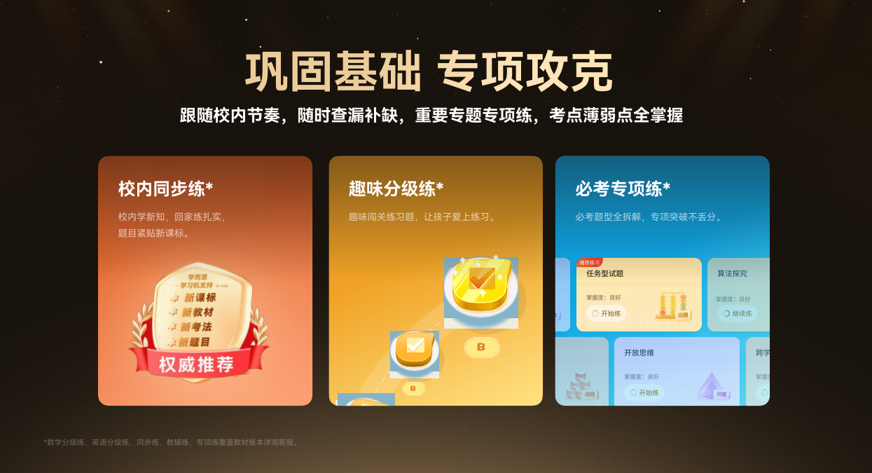 经典模式:高配内容、王牌练习、金牌领学,学习资源全覆盖