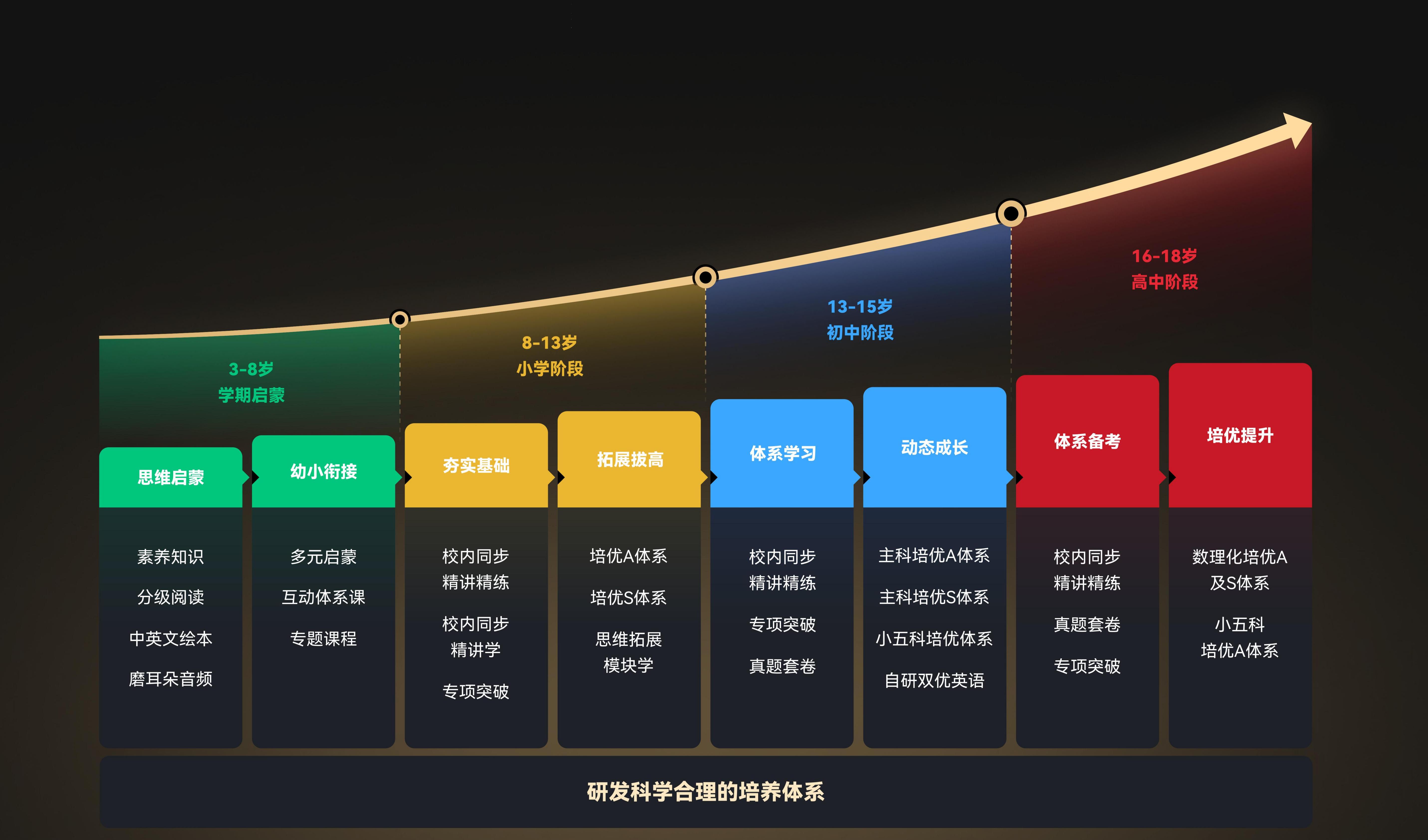 分类分层内容矩阵,校内校外双轨课程,每个孩子都有专属进阶路线