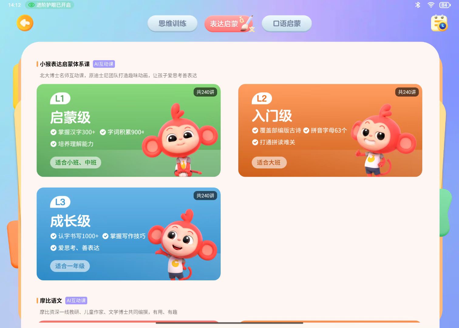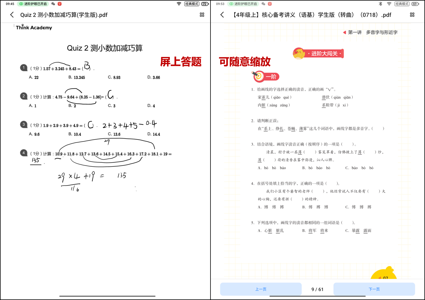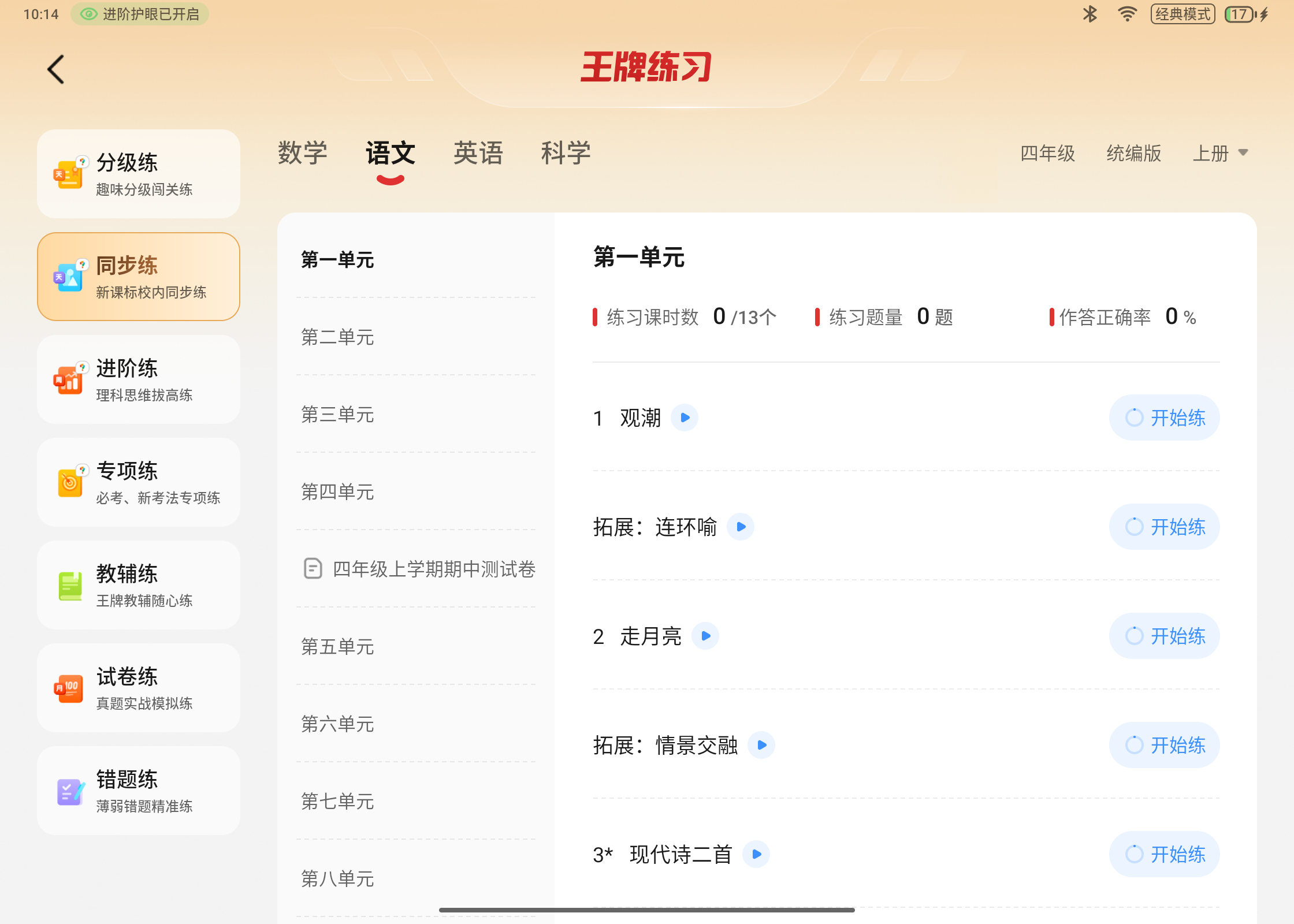 经典模式很好理解,就是看课程、做练习、阅读都选它,其他机型也有,就不多做解释了。