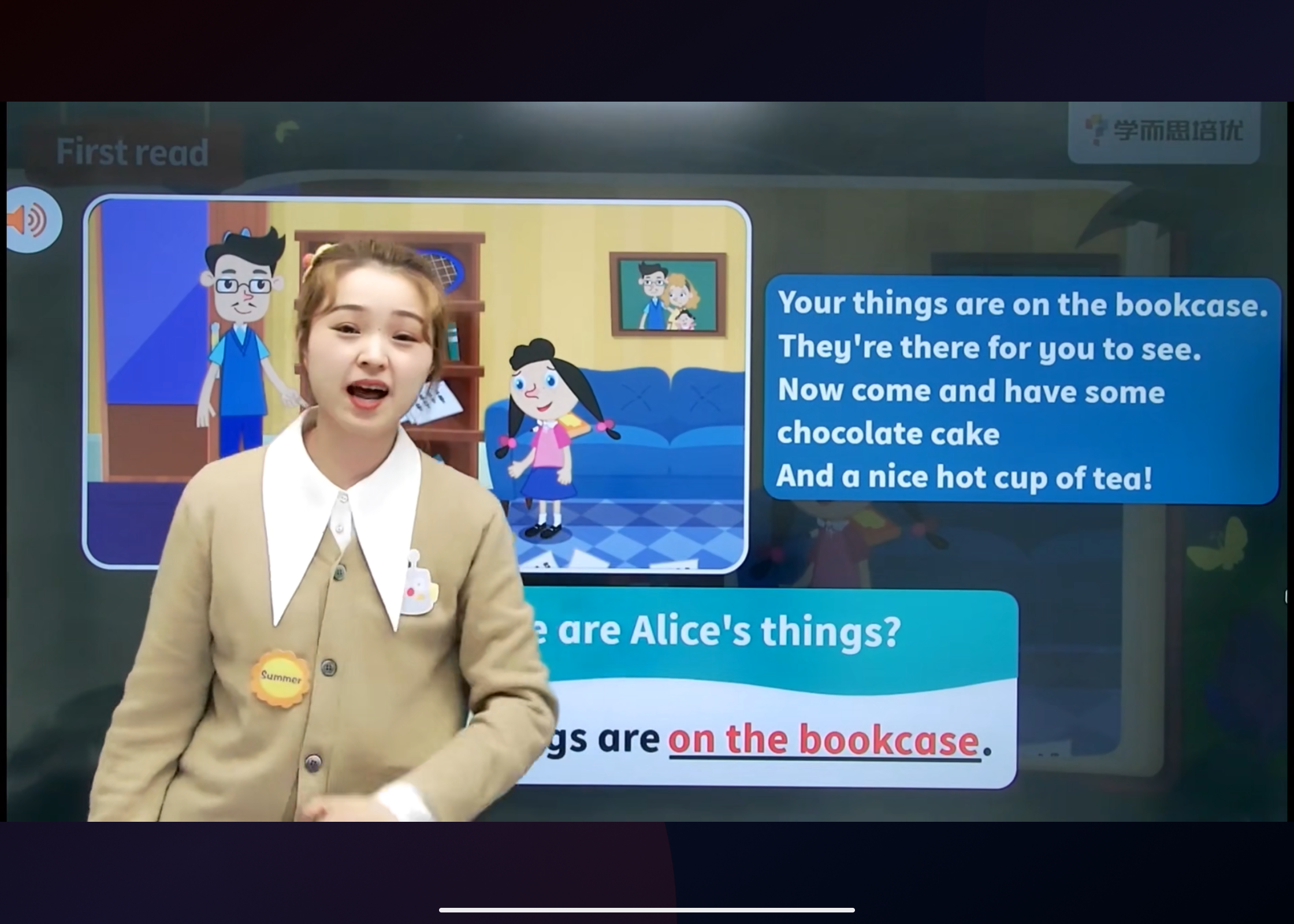 预-练习预热,从读单词开始,接着读句子,最后引导孩子模板跟读,学习各个主题的内容,加强主题词汇、句型知识扩充,为后面对话先打个基础,不至于说不出来。