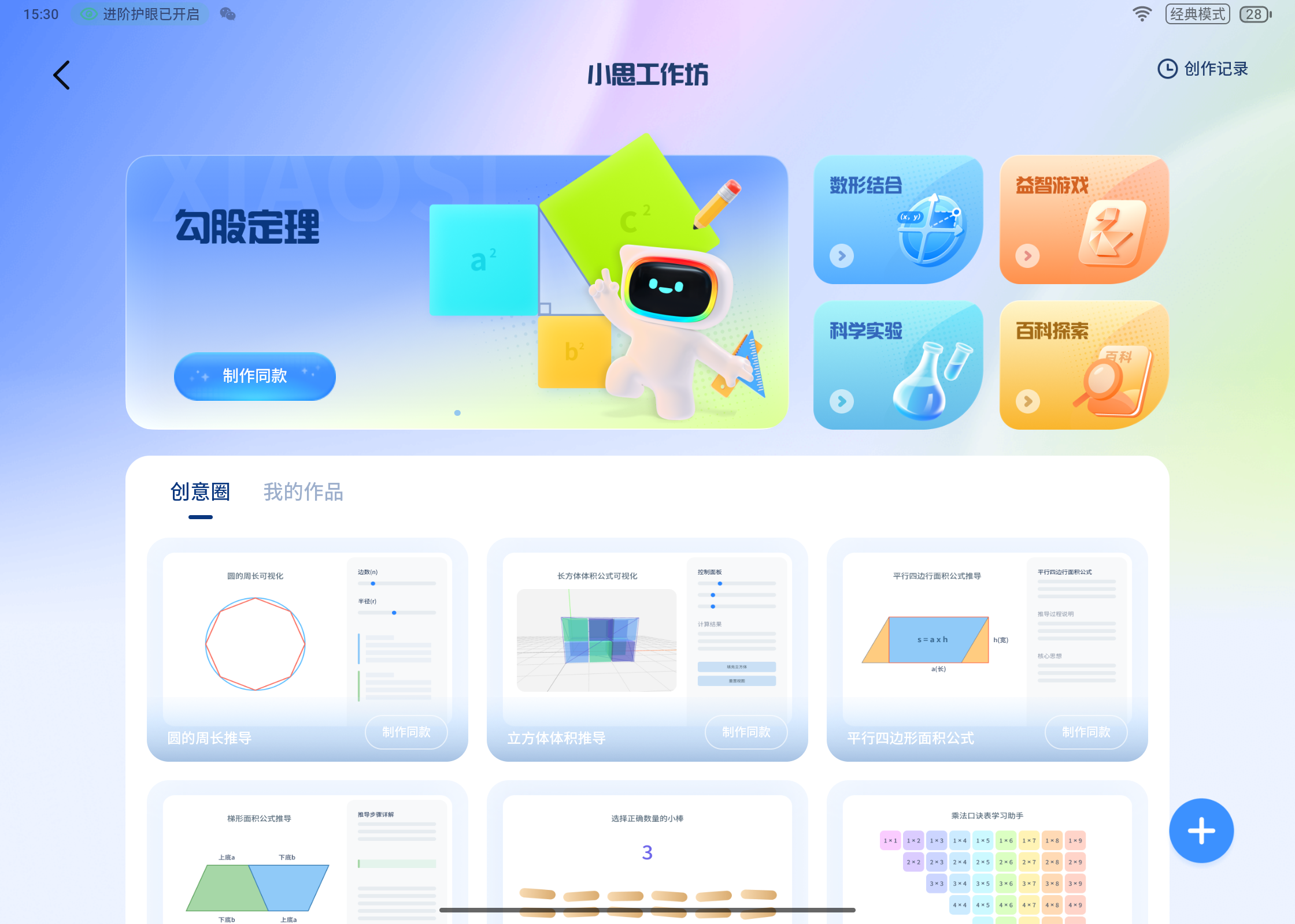 目前主要支持数形结合、益智游戏、科学实验和百科探索等4类主题的创作