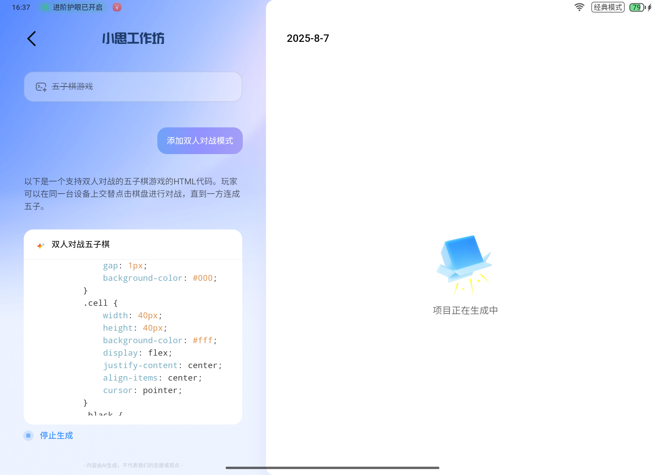 “做一个五子棋棋盘”→“支持人机对战的五子棋棋盘”