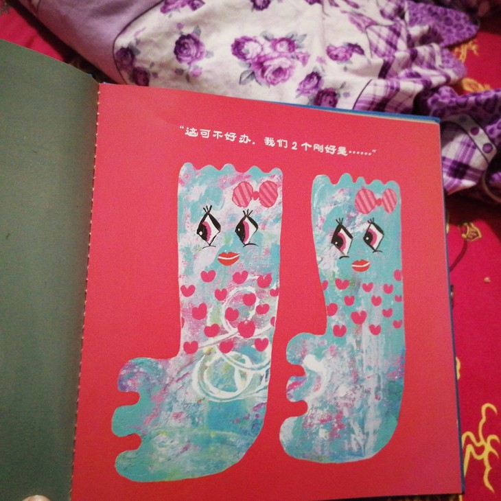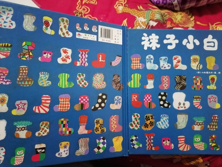 从封面来看,有许多颜色形状不一的袜子,但细心看,却能够发现封面的袜子和封底的袜子都能凑成一对。