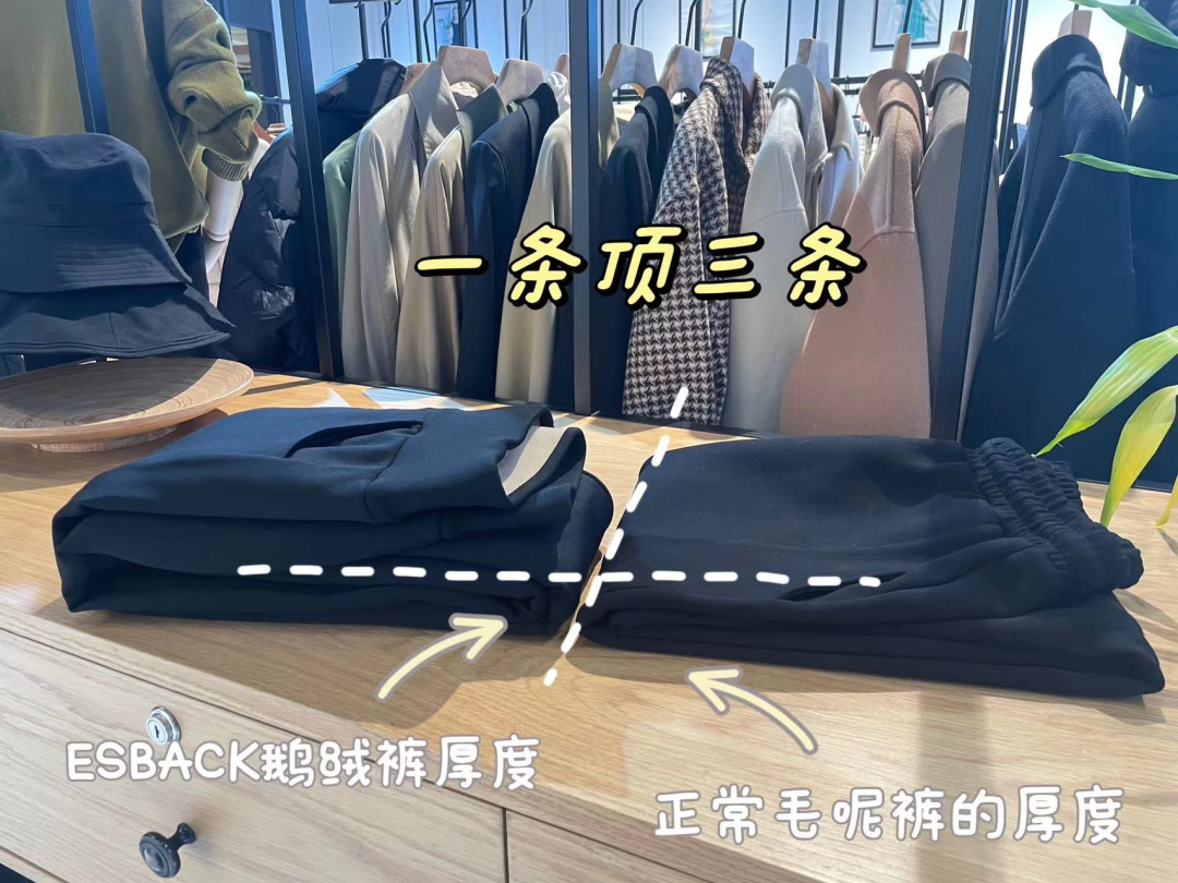 想要保暖又显瘦,推荐大家试试这款来自专柜高端女装品牌ESBACK的超重工加绒加厚鹅绒裤!