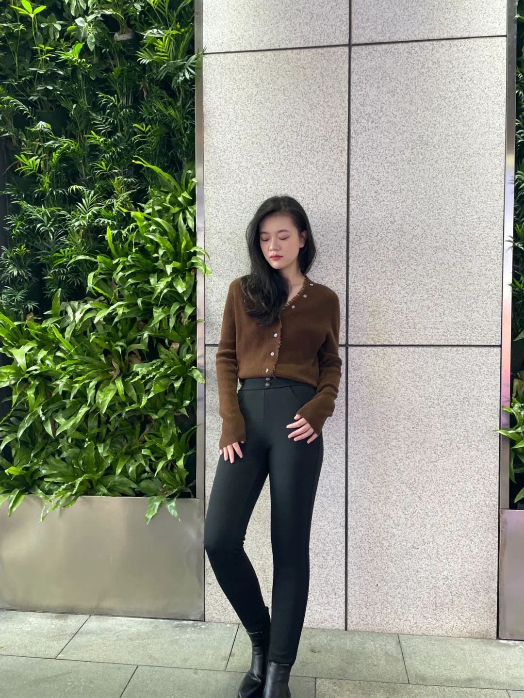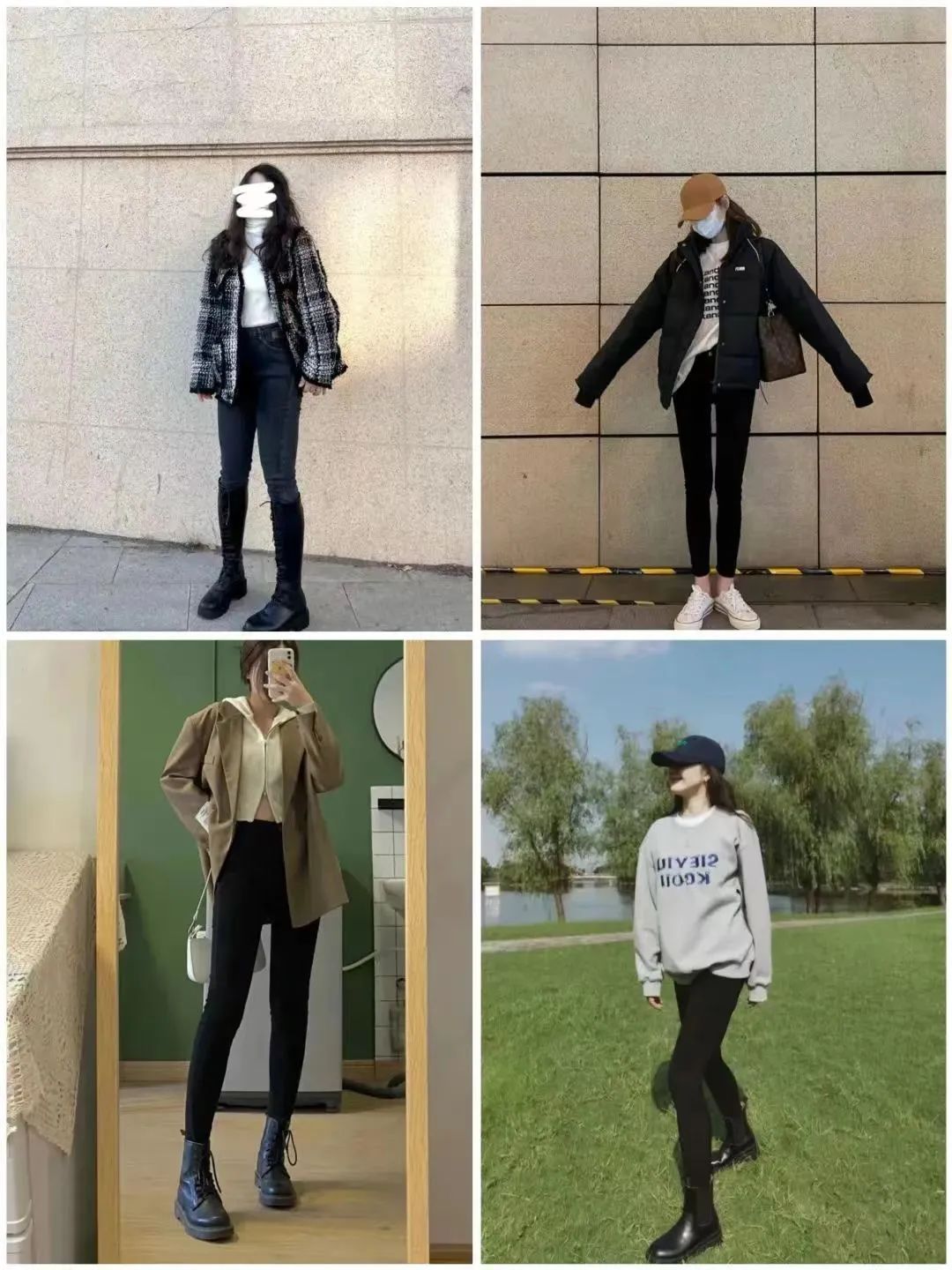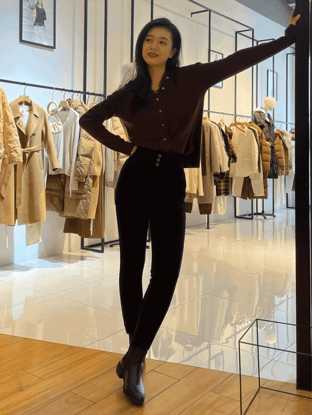 冬天衣物多显得累赘,裤子要选版型干净利落的,减少视觉膨胀感。